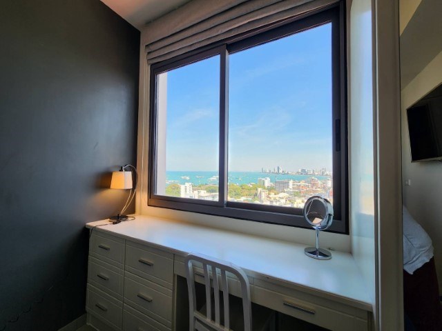 Large 1 bedroom for sale on floor 17th with fantastic sea view, living area 34.5 Sq.m., fully furnished with high quality furnishing, European Kitchen, washing machine, 24 hour security, fitness, 2 communal pools, garden on roof top, restaurant on site, free shuttle bus to Central Pattaya.