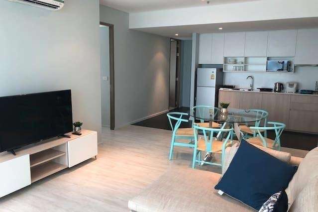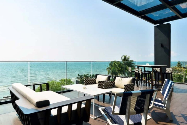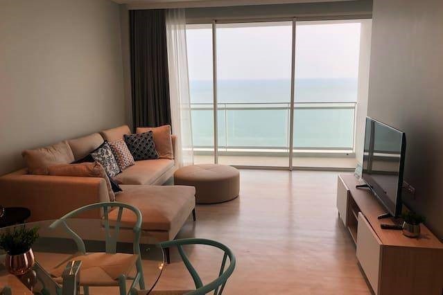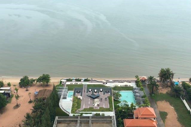 Absolute beachfront 3 bedrooms apartment on floor 25th, sea view, fully furnished, 2 bathrooms, European Kitchen, 24 hour security, set on unique location of Na Jomtien Beach, restaurant on site