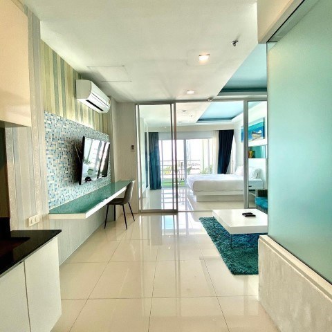 Luxury studio condo on 19th floor with partial sea view, living area 48 Sqm., fully furnished, fully fitted kitchen, Thai name, LCD TV, DVD. Many facilities are available at the ViewTalay 6 building, including swimming pool, massage, shops, restaurant, laundry, transportation services, etc. Next door to Central Festival shopping mall and the Hilton Hotel.
