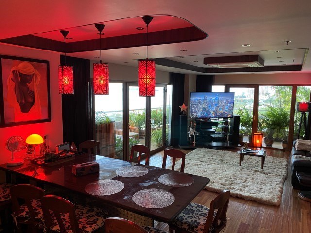 Large 2 bedrooms apartment on 14th floor, corner unit, frontal sunset on the sea (beautiful sunset view), Pattaya side, living area 140.81 Sq.m,renovation and arrangement on the European level , 3 bathrooms, master bedroom with toilet and shower, plus a private balcony, 2nd bedroom, opposite a toilet with a shower, storage room with horizontal washing machine, air conditioners in all rooms, hot water in all bathrooms and bathrooms