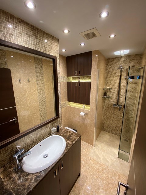 24 hour security, 3 large elevators, large communal swimming pool, parking lot, close to many restaurants, cafes, minimart, laundry shop and bath bus