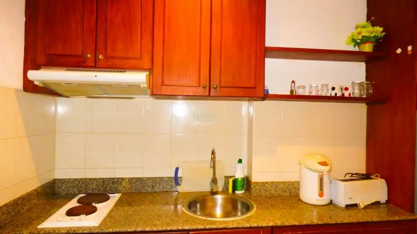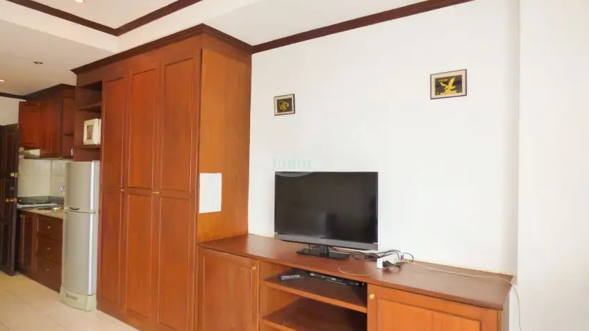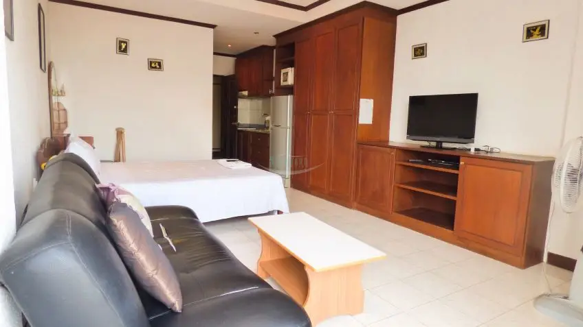 View Talay 1 Building A A clean and tidy studio apartment, situated in one of Jomtien's popular building among western expatriates. With its central location, it has easy access to a 24-hour supermarket, restaurants, public transports, and the Jomtien beach. Situated on floor 13 to the south side, this apartment has good views. It has been renovated to a good standard and features fitted European kitchen, LED-TV, A/C unit, ceiling fan, and quality bathroom. The building has 24-hour security, a large communal swimming pool, mini-marts, laundry, restaurants, and keycard entrance system. Offered on a long term basis of 3 months minimum at 12,000 Baht per month. Please contact us now for more information.Facilities