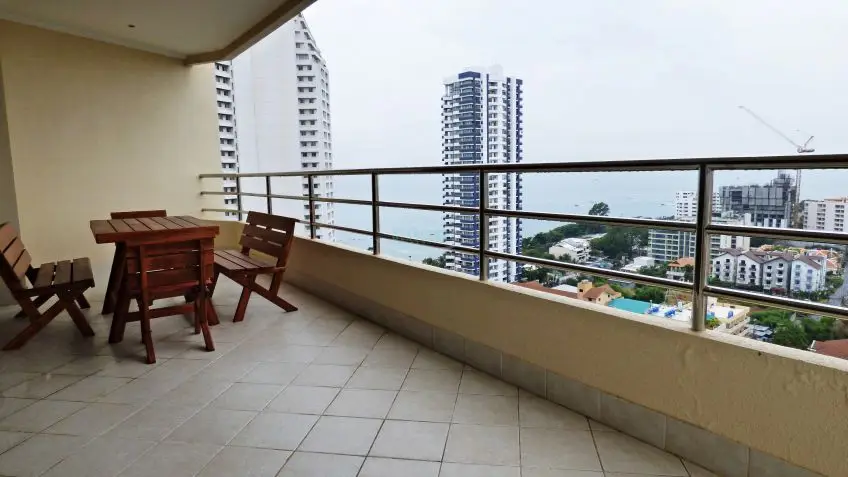 View Talay 3 Beachfront This beachfront condominium is located in the Pratumnak area at the end of Soi 6 with private key-card access to Dongtan Beach. Only a few minutes’ drive to Pattaya City or Jomtien Beach and is surrounded by Thai / International restaurants, markets, shops, entertainment etc. This 1 Bedroom corner condo on the 17 th floor has a living space of 93 m² including the well sized balcony with spectacular sea and city views. The apartment has a European kitchen with all the appliances, 2 air-cons, flat screen TV’s and a washing machine. Facilities of the building include: 24 hour security guards with CCTV, a large communal swimming pool with a restaurant on sight. This beachfront apartment is offered with a minimum 6 month contract at 27,000 Baht per month and with a 12 month contract at 25,000 Baht per month. Please contact us now.Facilities
