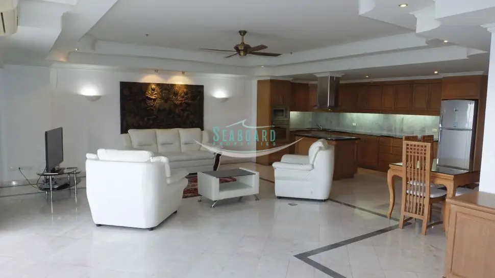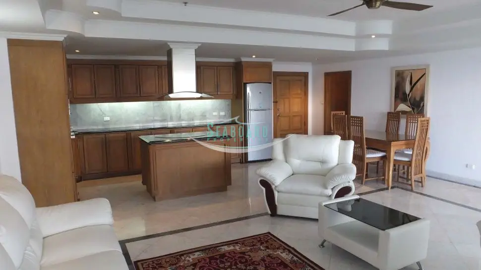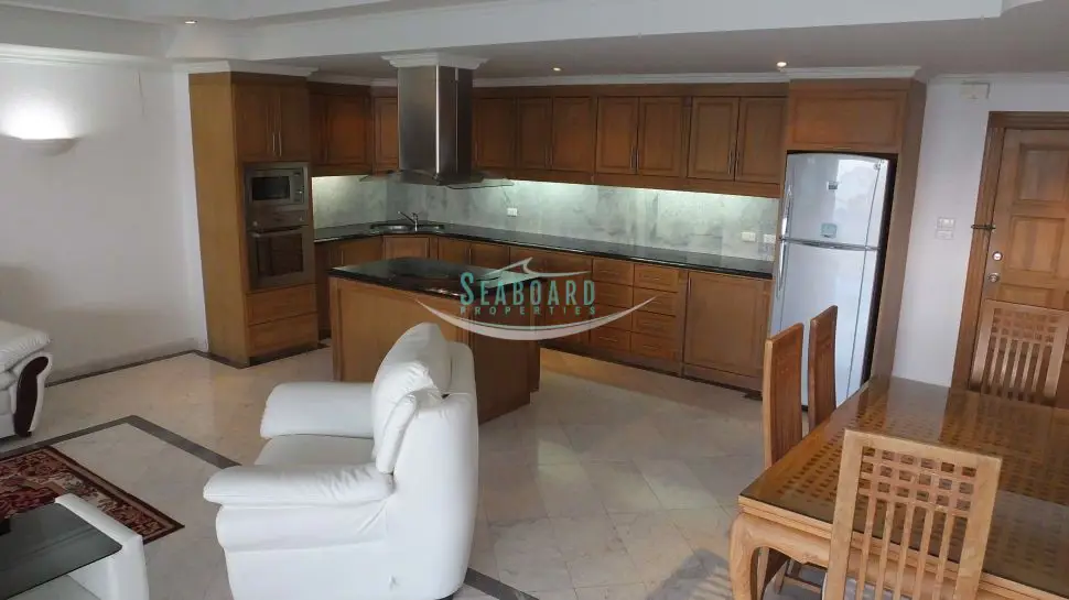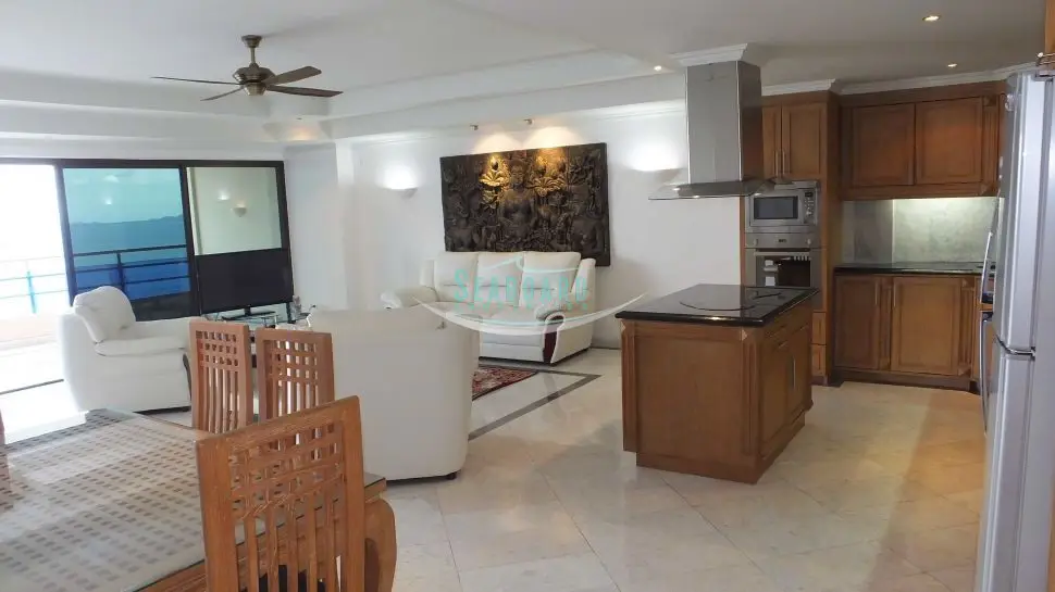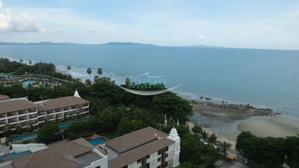 Located in the popular Pratumnak Hill area, this condominium building is situated right on the beach and offers views across the Jomtien water park and the sea. This spacious 2-bedroom apartment is located high up on the 15th floor and has been renovated to a good standard and includes a fitted European kitchen with an island, full A/C throughout, LED screen TV, marble flooring, and large balconies offering spectacular ocean views. The area is developing now so international restaurants and entertainment are within walking distance. The building has 24-hour security, ample car parking space, and a large communal swimming pool with private key card access to Dongtan Beach.