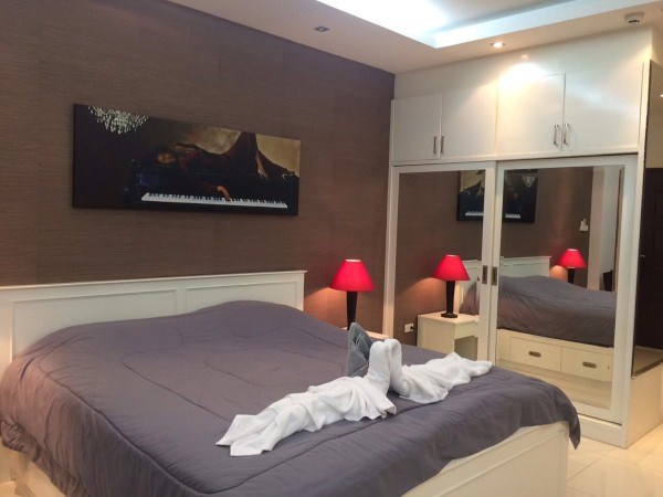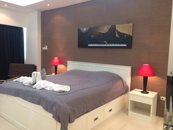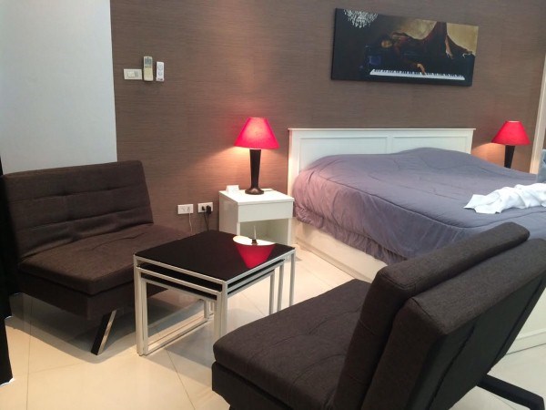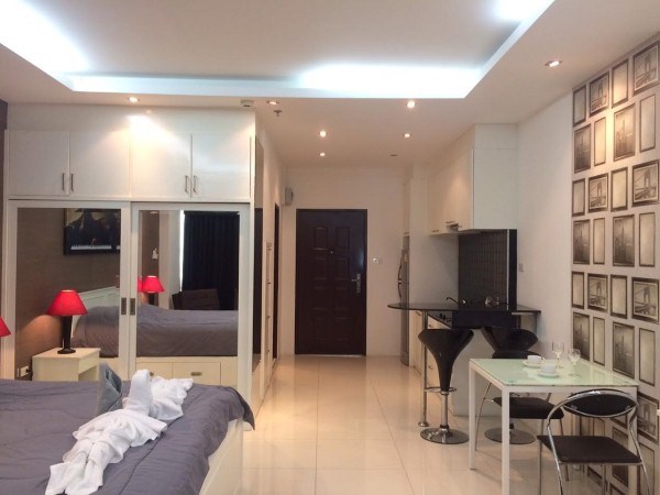 Studio on the 15th floor Pattaya side, living area 48 sqm fully furnished with high quality and decorated , European kitchen, communal swimming pool, gym, 24 hours security,This unit is in foreign name.