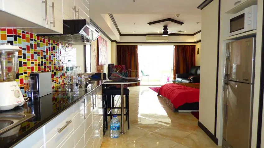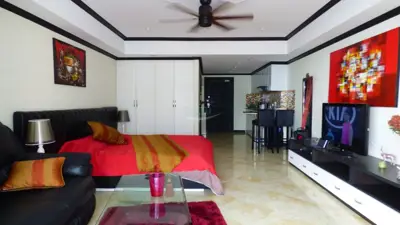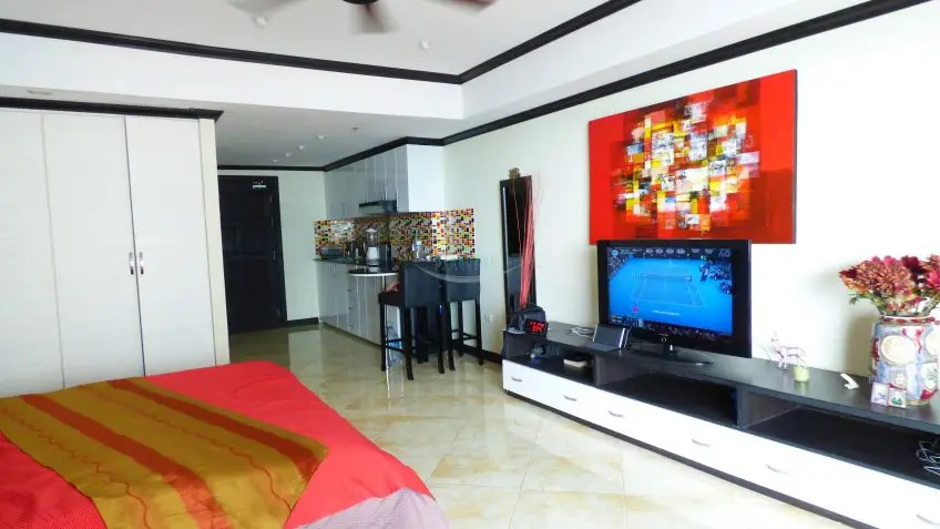 View Talay 5 Building C The studio apartment with a balcony is on the 13th floor in Building C and has been renovated to a nice modern standard throughout, including the kitchen. This apartment is South facing and enjoys lovely sea-views. It is offered for sale fully furnished and comes with fitted European kitchen, built wardrobe, A/C, TV, ceiling fan, quality bathroom with modern glass shower cabin. The building has direct Dongtan beach access, 24/7 security, CCTV, a large communal swimming pool and several businesses on the ground floor. Title deed held in Foreign name ownership with taxes and transfer fees split 50/50 between both parties. Please contact us now for more information and to arrange a viewing.Facilities