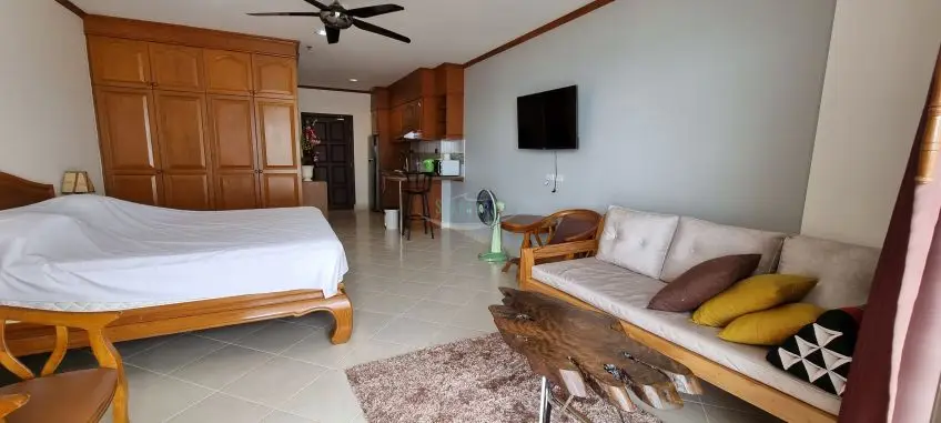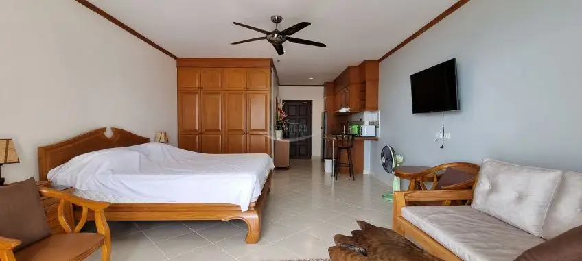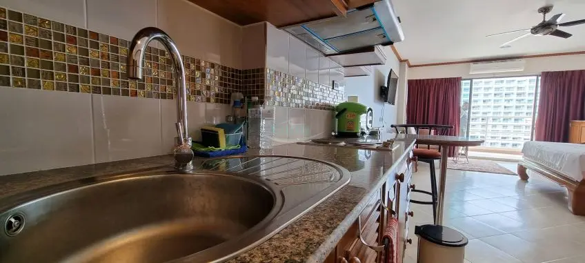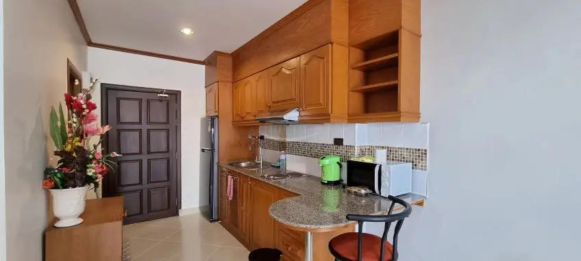 View Talay 5 C is located right on Dongtan beach with easy access to all of the local amenities and public transport, close to Jomtien Beach. A fully furnished studio apartment with a sea-view balcony on the 15th floor of the building. It has a living area of 48 sq.m including a balcony. It offers a western style kitchen with a hob, hood, and refrigerator. Facilities of the building include 24/7 security, key card access, a communal swimming pool, and parking. For more information, please contact us now.Facilities