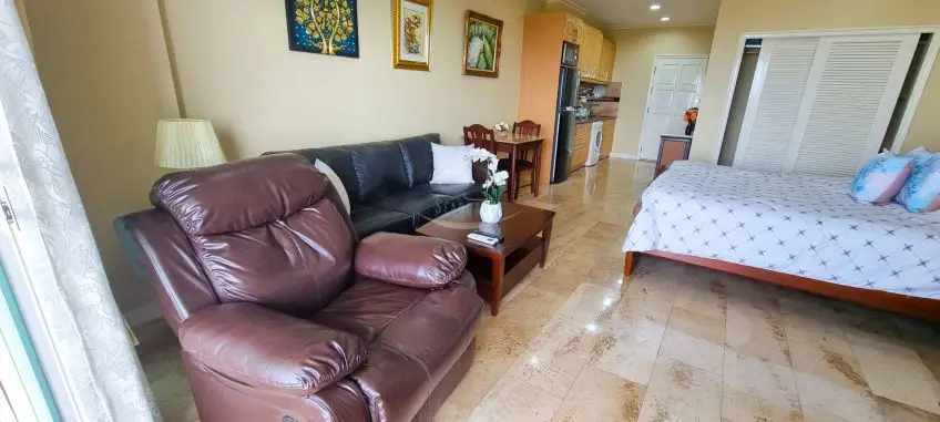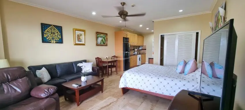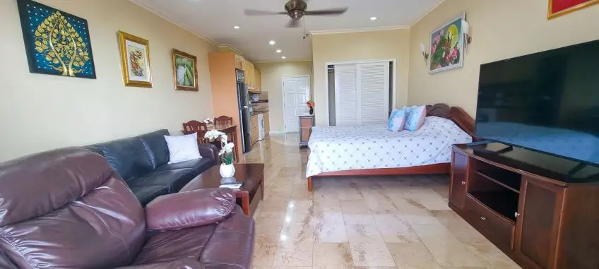 View Talay 5D one of the most popular buildings for ex-pats in Pattaya at very reasonable prices. View Talay 5 has direct access to Dongtan Beach and to Tappraya road. It takes only 10 minutes by tuk-tuk to reach Central Pattaya. The building has 24/7 security and a large communal swimming pool. The studio apartment with a balcony is offered for rent fully furnished and features a fitted European kitchen, air conditioning, built-in wardrobe, bathroom, and balcony offering sea and sunset views. For more information, please contact us now.Facilities