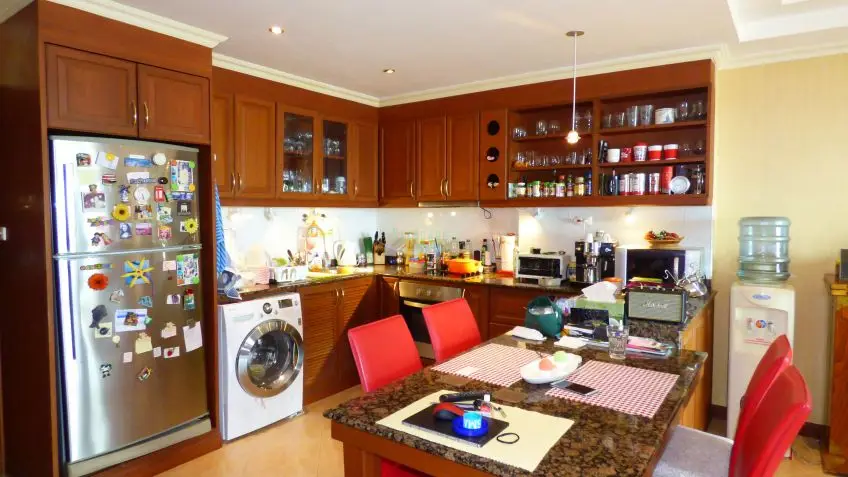 View Talay 5 D Condominium One of the best known and most popular buildings in Jomtien, with direct access to Dongtan beach, plus all amenities are right at your doorstep including the 24/7 taxi connection. High floor two-bedroom apartment with two balconies and sea-views. The apartment is partly furnished and decorated to Western standards, including a very well equipped, large European kitchen with double sink, refrigerator, microwave, oven, toaster, electric glass-ceramic hob with exhaust hood. The apartment is equipped with three air conditioner Master bedroom with king-size bed. Guest room with a bunk bed (double + single). Large flat-screen TV. Cable TV and WIFI. The open floor plan is spacious and very comfortable. The building has keycard security access from the beach, 24-hour security, a large communal swimming pool with a restaurant, plus mini marts, laundry service, and many other small businesses on the ground floor. The title deed is held in a Foreign name, with transfer fees split 50/50. For more information, please contact us now.Facilities