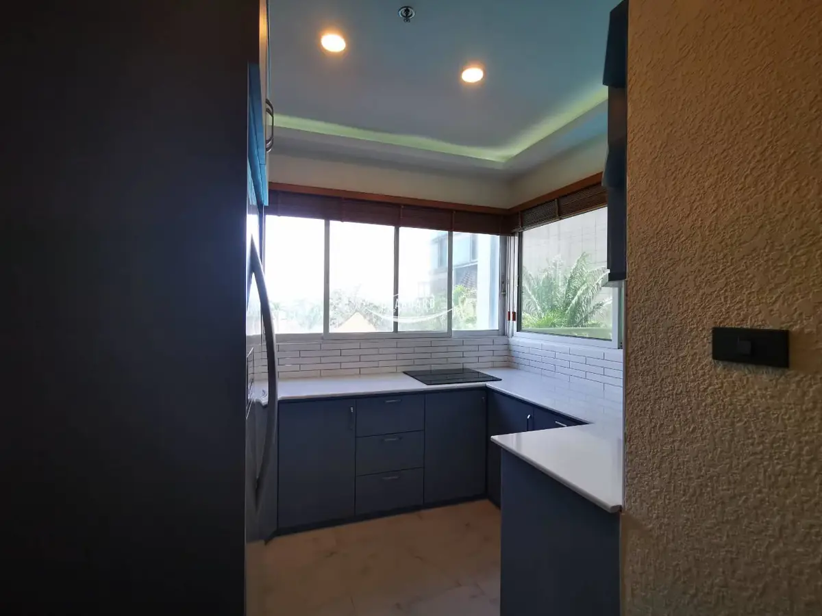 View Talay 6 Beachfront Condo corner one-bedroom apartment with a large balcony to the Naklue Side of the building and comprises a spacious living area with a fully fitted European kitchen, a well-sized bathroom with full tiling, balcony with pool view views.
