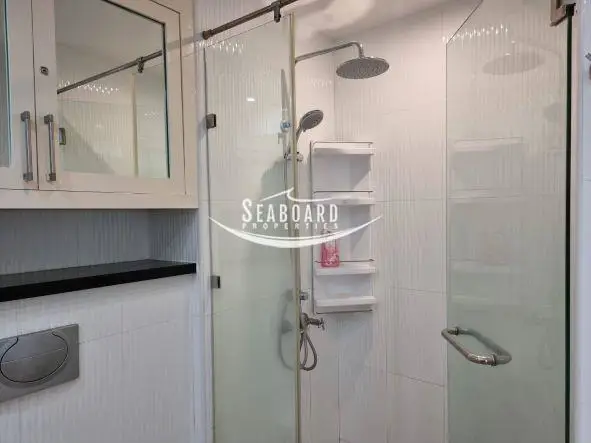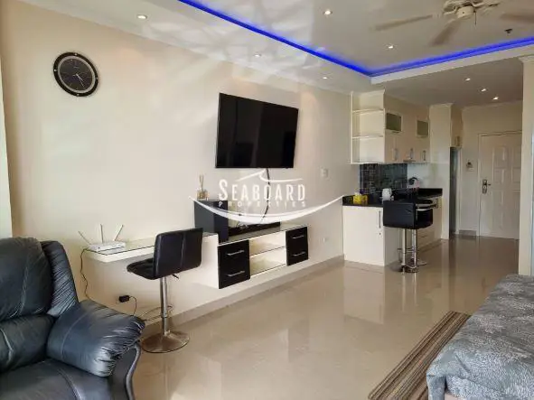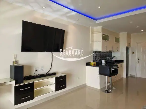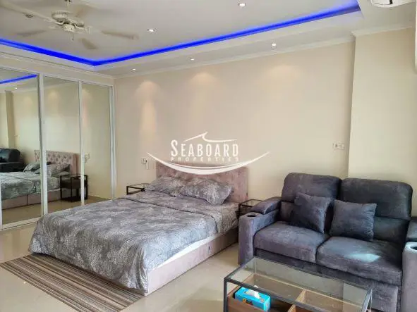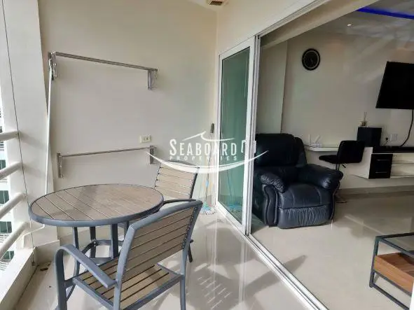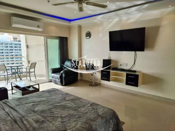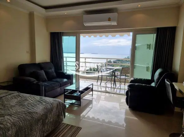 The spacious high-floor studio apartment has a living area of 48 sq.m including the sea-view balcony to the Pattaya side of the building.