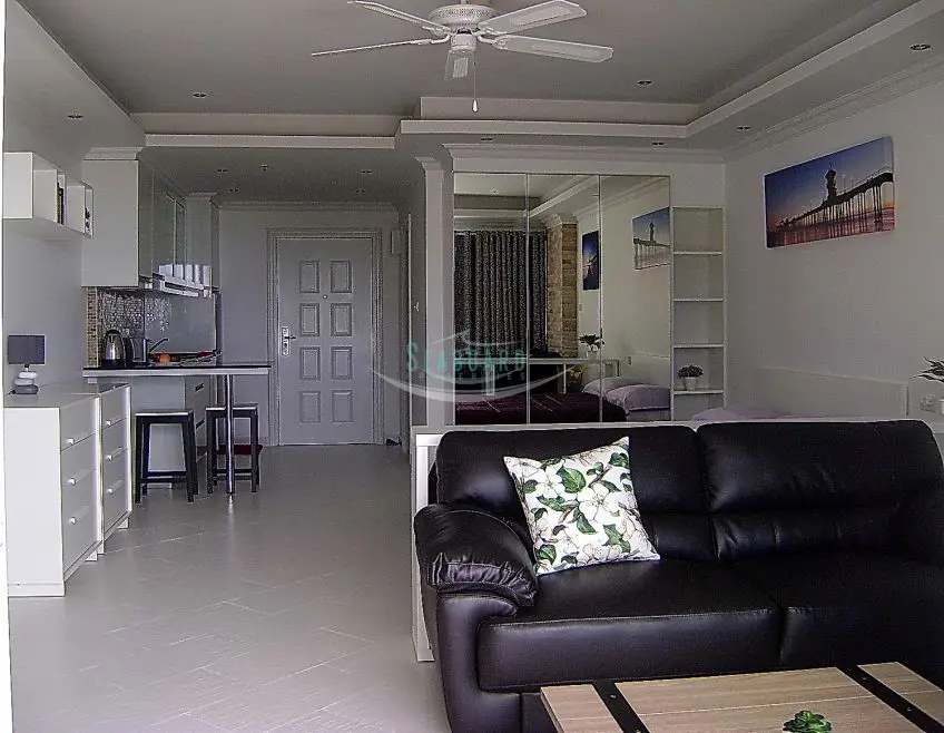 This modern-style studio apartment with a balcony is on the 19th floor of the building, the apartment is fully furnished and well equipped, so you only need to bring your suitcase and enjoy the beautiful ocean view of the famous “Koh Larn” island.