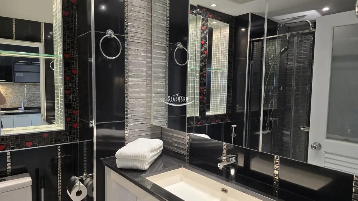 The apartment is furnished to a good modern standard and comes with a fitted European kitchen, LED TV, bathroom with walk-in shower, air conditioning, and good-sized balcony to the Jomtien Side of the building. It also comes equipped with Cable TV and WIFI connection.