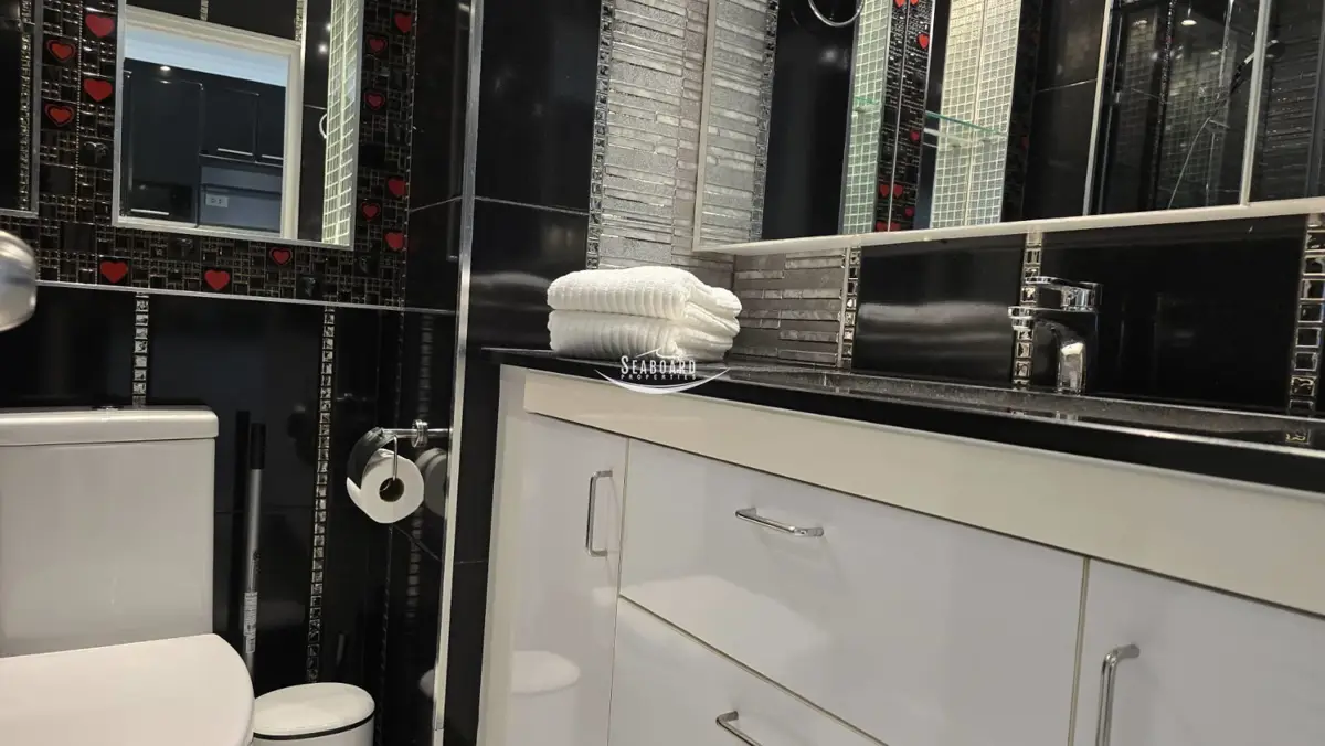 The building has 24-hour security and CCTV, a large communal swimming pool, ample car parking, and direct access to the beach.