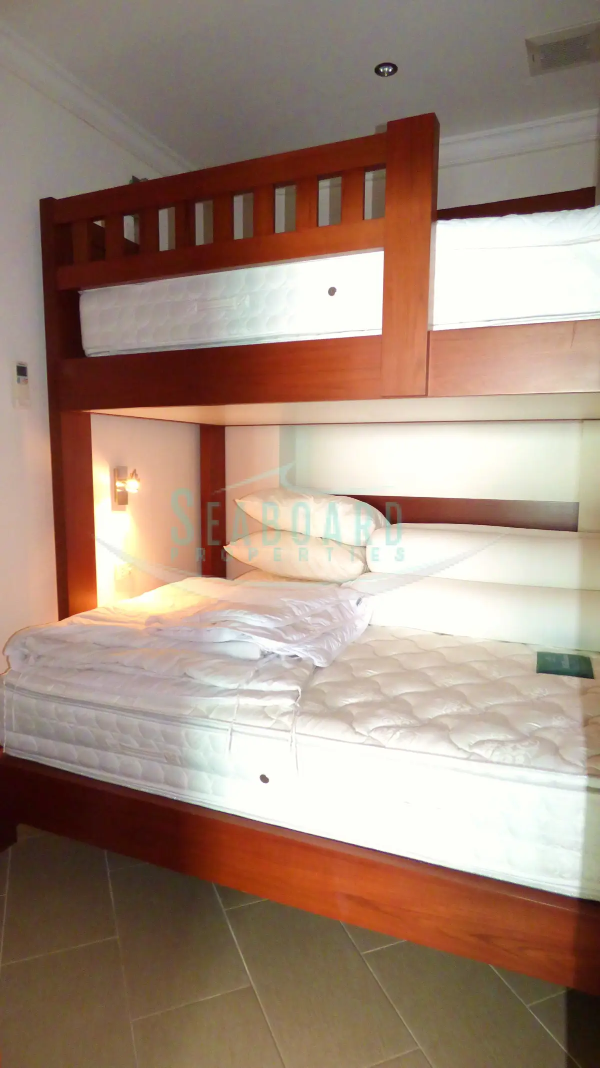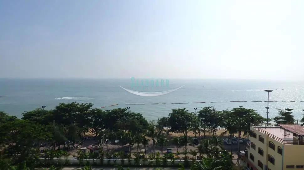 Beachfront Jomtien / Dongtan Beach with private key-card access to the beach. This oceanfront corner condo with a large L-shaped balcony offers great ocean views on the 8th floor.