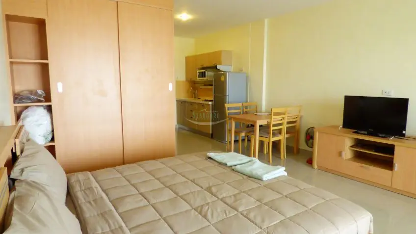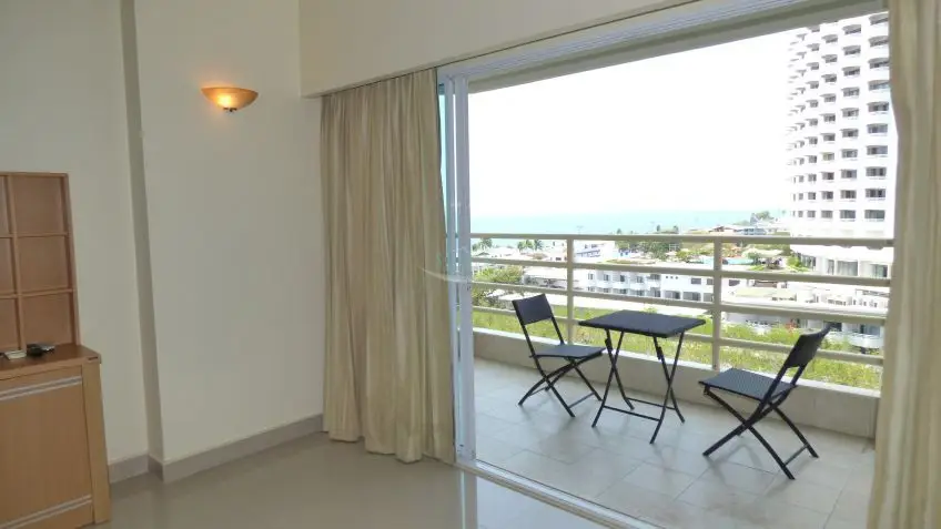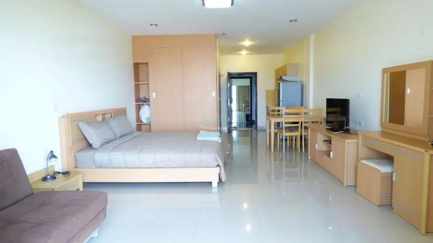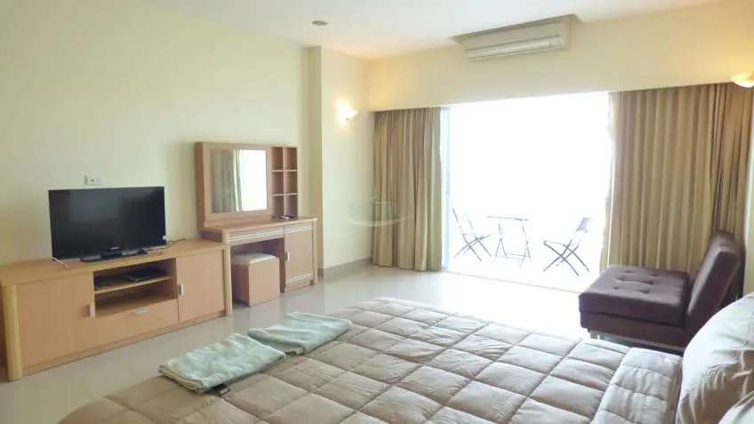 View Talay 8 Condominium Modern studio apartment with a sea view balcony on floor 9. An airy opened studio with 1 bathroom, built-in kitchenette, air-condition, lots of storage, fully furnished and all electrical appliances included. The apartment also has a spacious balcony that overlooks the beautiful sea. The building is providing a large communal swimming pool, shops inside the building plenty of car parking spaces and 24-hour security. Offered for rent with a minimum 3-month contract at 20,000 Baht per month, 6 months at 17,000 Baht and 1 year only 15,000 Baht per month. For more information and to arrange a viewing, please contact us now.Facilities