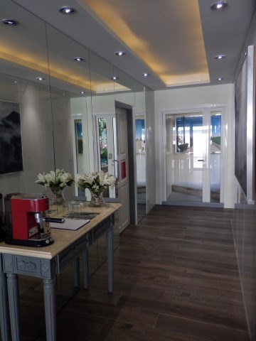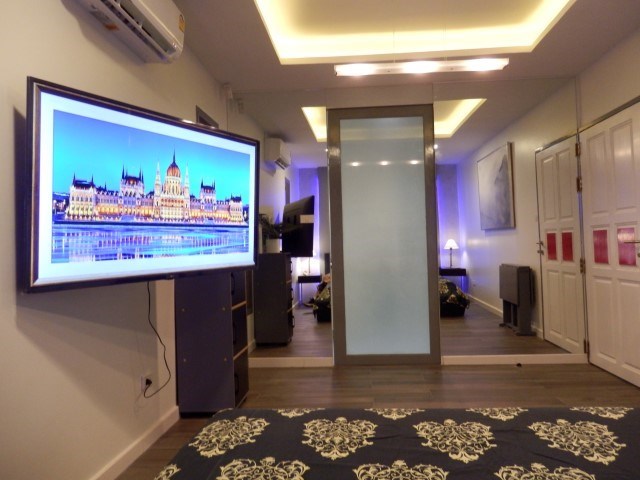 A Modern kitchen with a custom designed 'flying' cupboard which hangs over the kitchen island in the center. The master bedroom includes a custom high ceiling and top quality furniture, 6 TCs with a HiFi sound system. Relax in the jacuzzi and flip on the remote controlled LED lit pool and fog machine in the garden to create the atmosphere you enjoy.