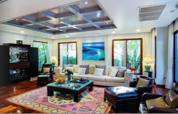This breathtaking and outstanding 4 bedrooms property can be found in a very quiet and safe location. Walk across the water to enter the home featuring polished wood floors and LED lighting throughout the house. A custom designed ceiling encompasses a large living room space where you are spoilt for choice for seating options.