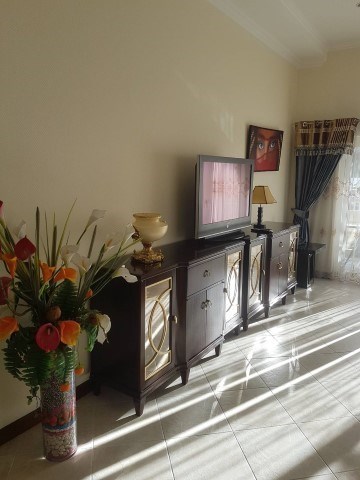 Large 1 bedroom for sale and rent on ground floor,living area 96 Sqm, 1 bathroom, fully furnished, European Kitchen, 24 hour security, parking lot, large communal swimming pool.