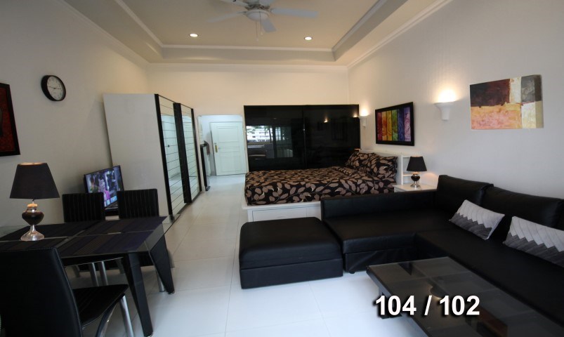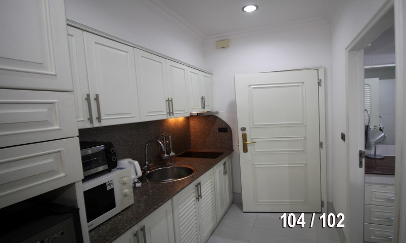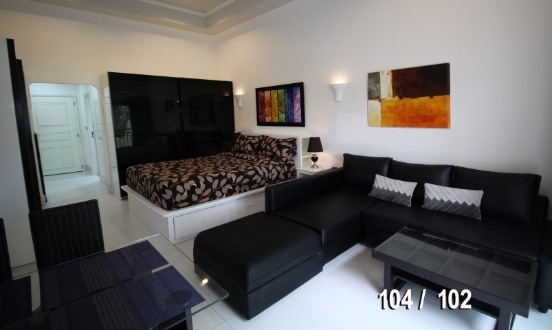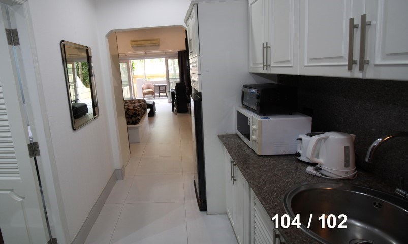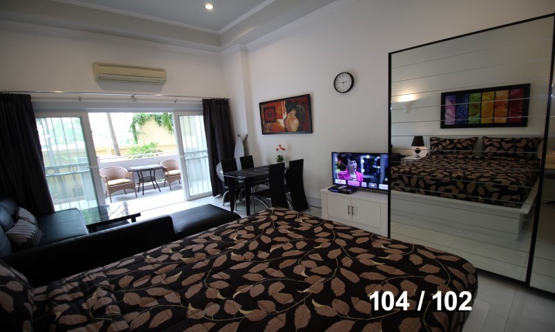Large studio apartment on ground floor wtih garden view, living area 45 Sqm, 1 bathroom. Brand new renoveted with fully furnitured including washing machine