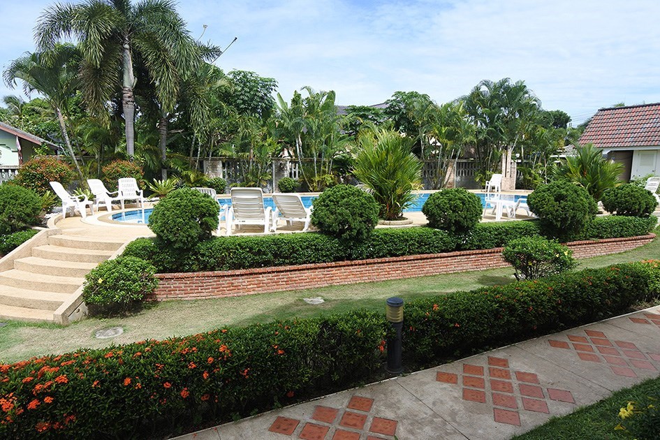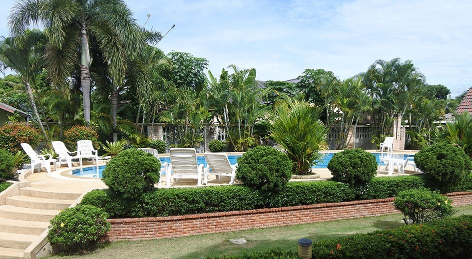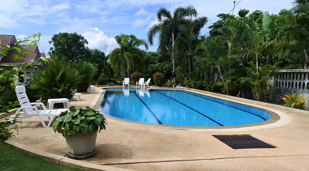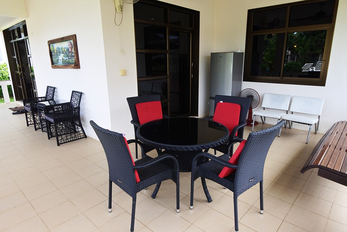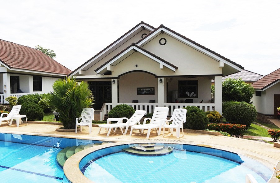 The very nice villa is located in a small area with only 4 houses with a large common park area which has both swimming pool, guest house and a fish pond, which is like a small lake.