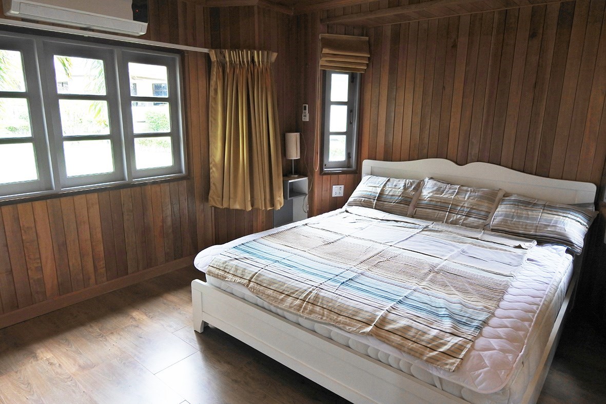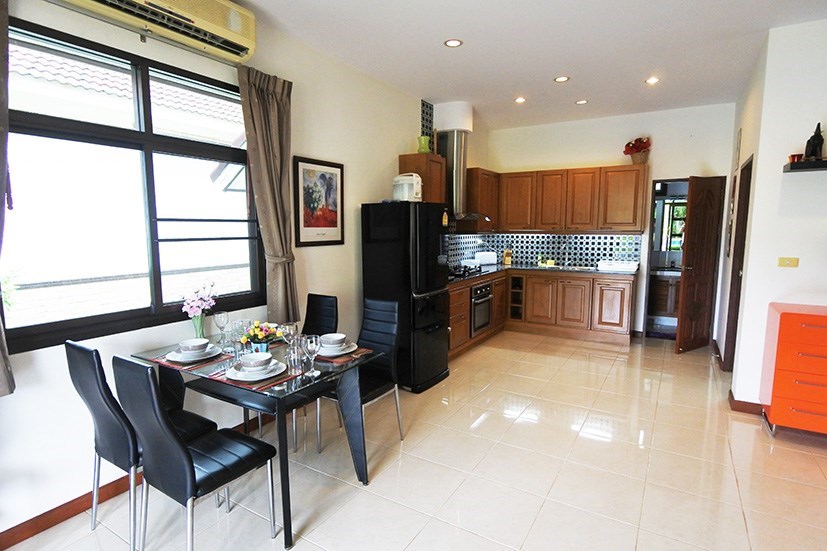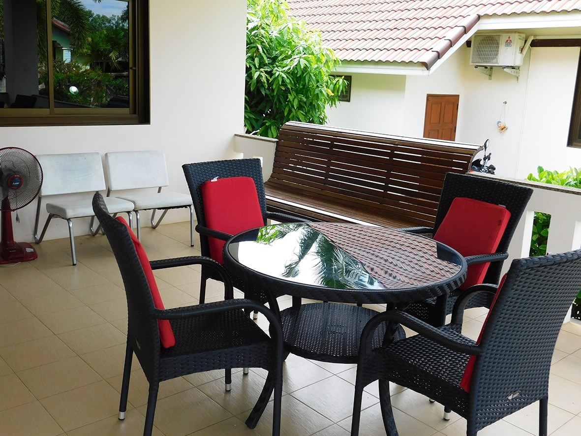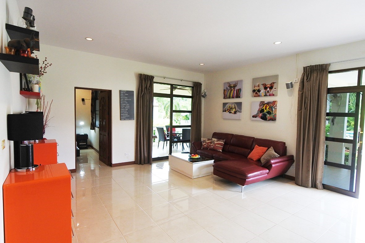 The very nice villa is located in a small area with only 4 houses with a large common park area which has both swimming pool, guest house and a fish pond, which is like a small lake.