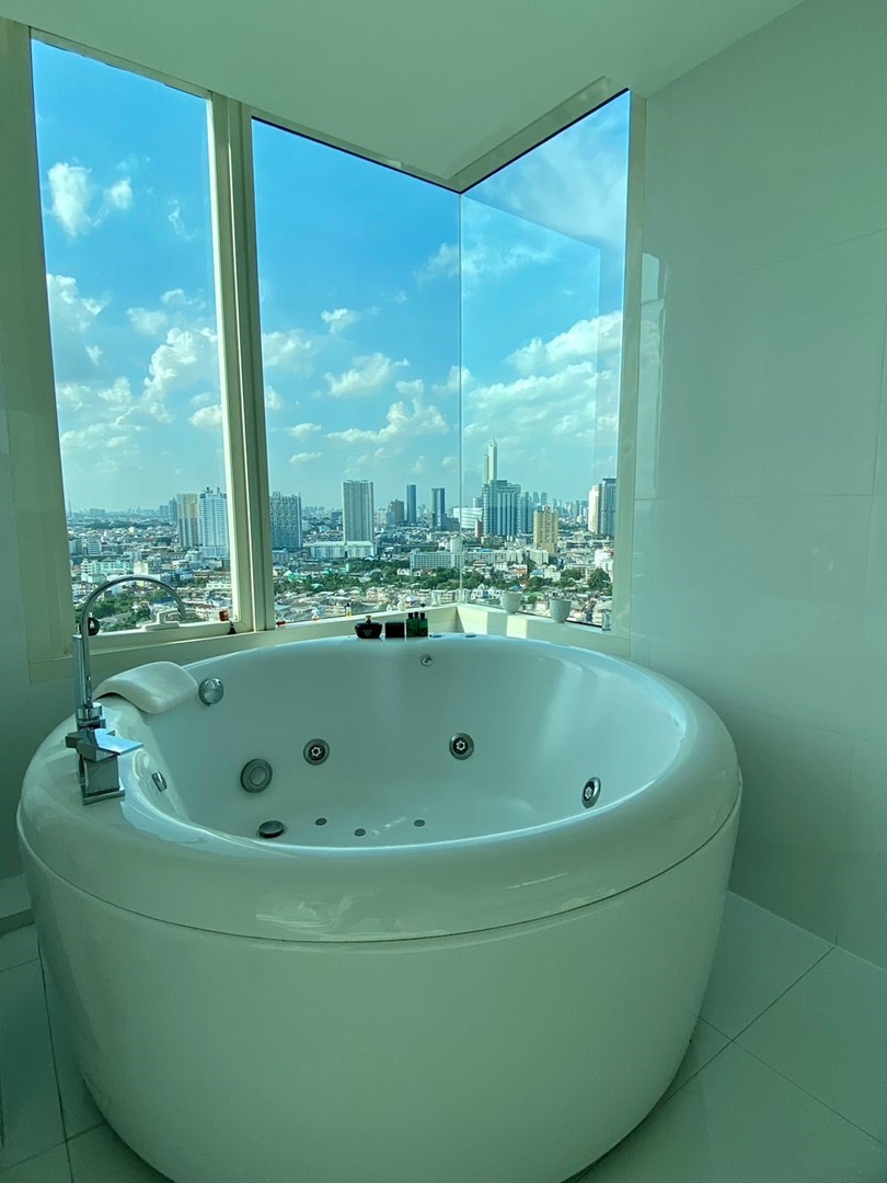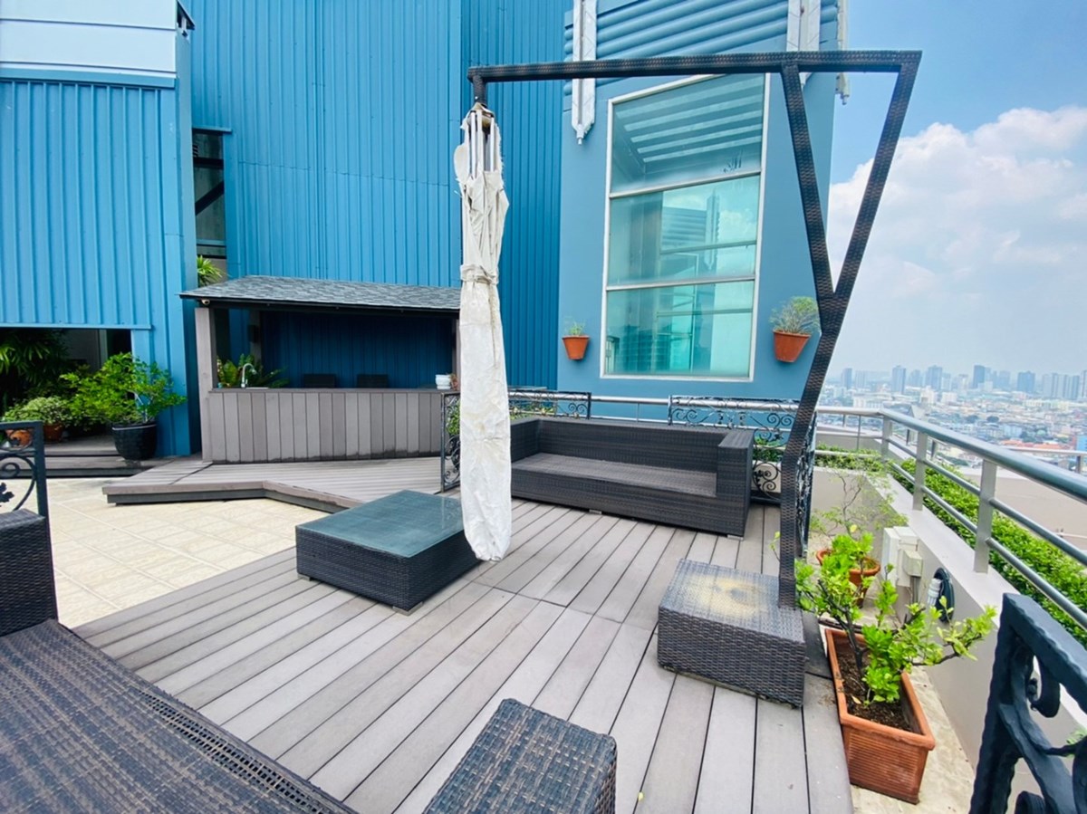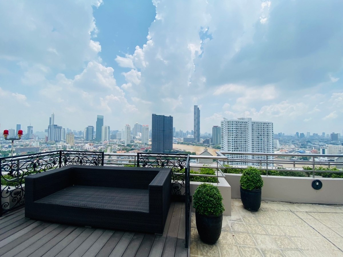 This is a 4 bedroom, 6 bathroom penthouse on the market for sale at Watermark Chaophraya on Charoen Nakhon Road. The freehold condo measures a spacious 273 sqm and is a duplex type with a private 100 sqm rooftop terrace. The property has a maid's quarters, walk-in closet and nice views of the river and surrounding area. Watermark Chaophraya is a pet friendly building with great facilities, including swimming pool, gym, lounge, tennis court, garden, parking and security service.