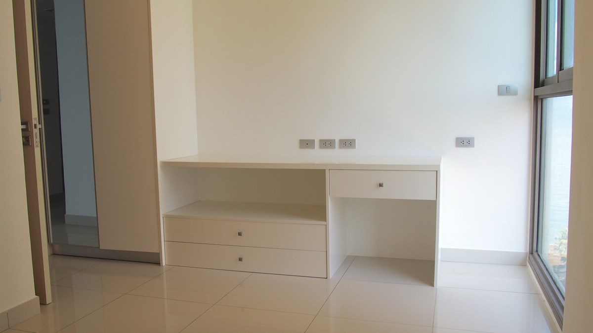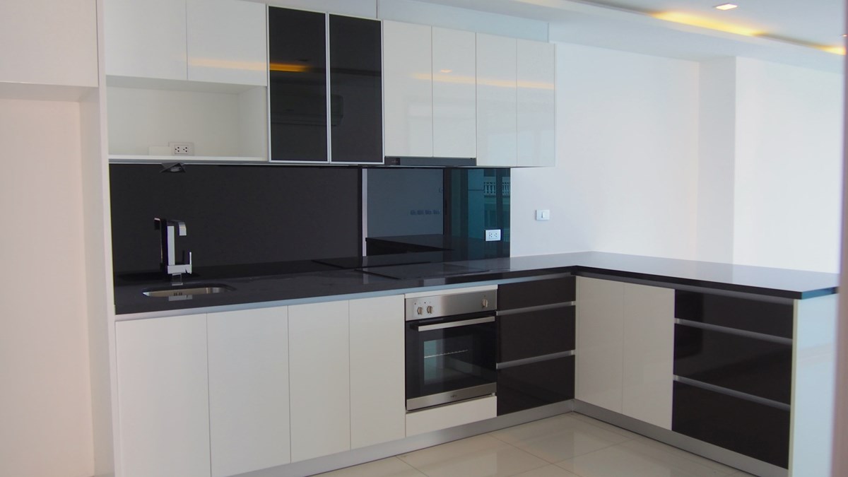The condo comes unfurnished, but with build in wardrobes, european kitchen with electric hob and oven.