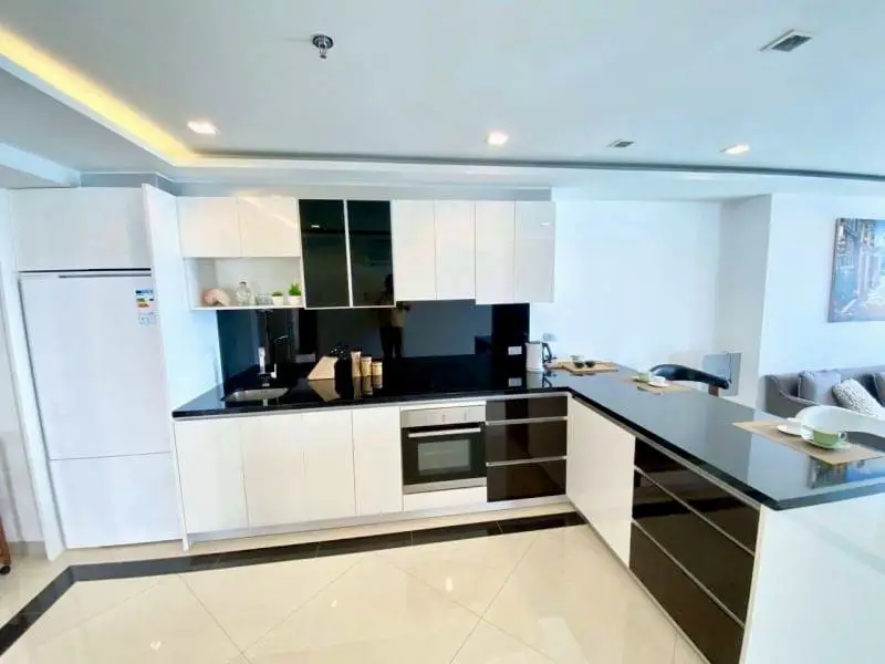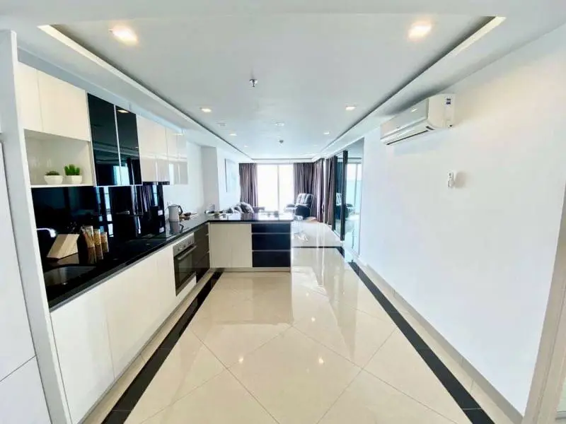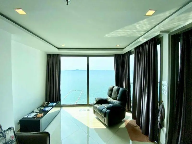 Overall, this 2-bedroom modern apartment in Wongamat Tower presents an upscale living experience with its spacious layout, stunning sea views, high-quality furnishings, and exclusive features like a private elevator. The condominium's security measures and access to fitness facilities and swimming pools add to the appeal, making it an attractive choice for those seeking a luxurious residence in Pattaya.