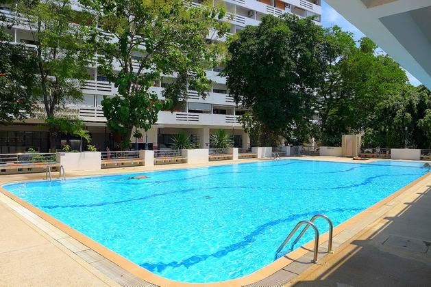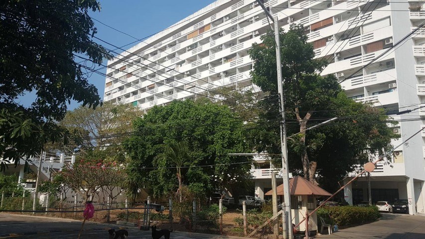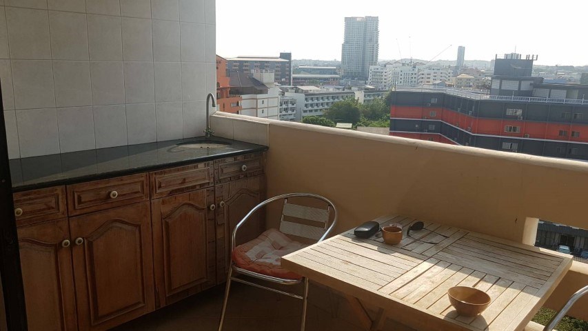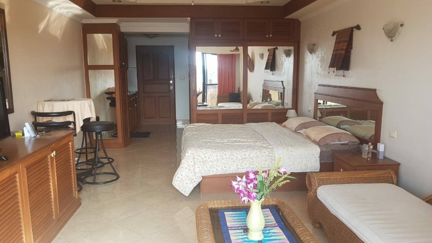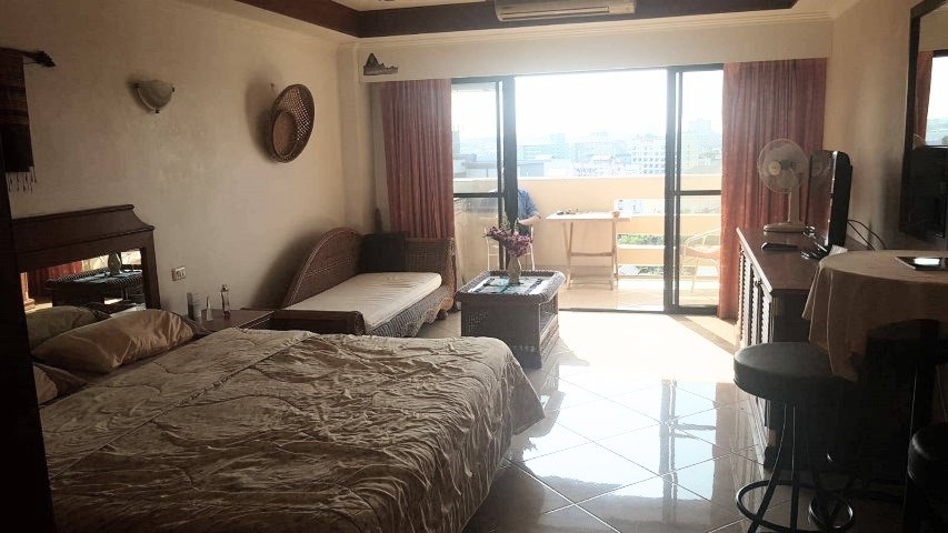 Large studio on 9th floor, sea view, living area 39 sqm, fully furnished, foreign name, 24 hour security, communal swimming pool, 850 mt from Walking street , 500 mt from Tukcom, Friendship market and Soi Buakhau market