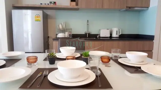 The Zire Condominium This property is set within a high-rise beachfront condominium located in a quiet area of Wongamat beach. This is a 1 bedroom apartment on the 10th floor where you will feel a good breeze, and have a sea view over the treetops, across the swimming pool and along the beach front. 1 Bedroom, 1 Living room, European open plan kitchen, 1 bathroom, Fully Furnished. Kitchen comes with a fridge, toaster, microwave, kettle, and water filter. Dinning area comes with a dinning table with 4 chairs. Living room comes with nice sofa and flat screen TV, home theater unit, a balcony with sea view, and a washing machine on the balcony. Bedroom comes with balcony and sea-view, a nice double bed with bed sheet, pillows and pillow cases, 1 flat screen TV, a desk and chair, and a lounger. Bathroom comes with shower unit and hot water. Facilities include: fitness center, swimming pool, and tennis/basket ball court, playground, garden, and 1 parking space for this condo. Contract condition: Minimum 1 year contract at 38,000 Baht/Month negotiable. This price does not include electricity, water, Internet, Cable TV, etc.Facilities