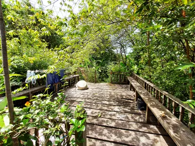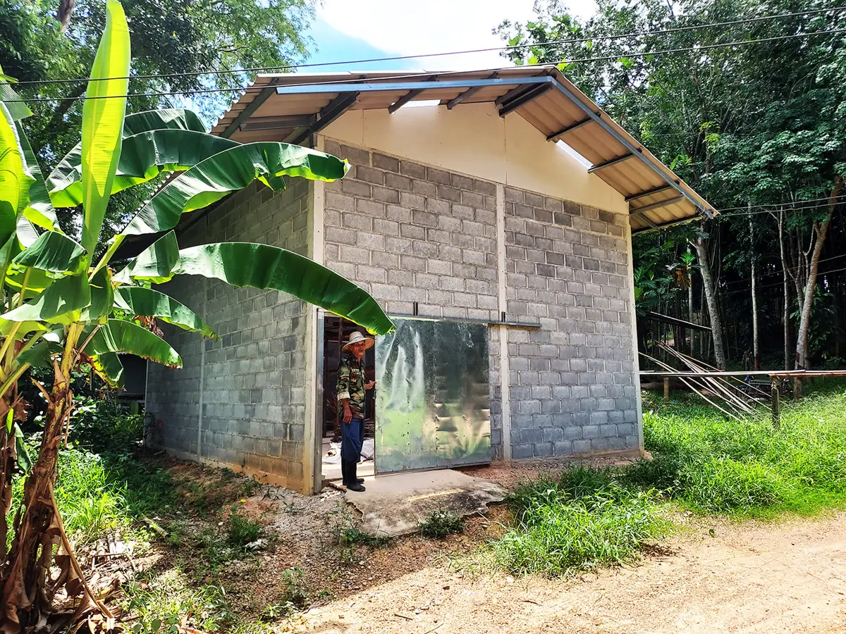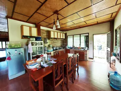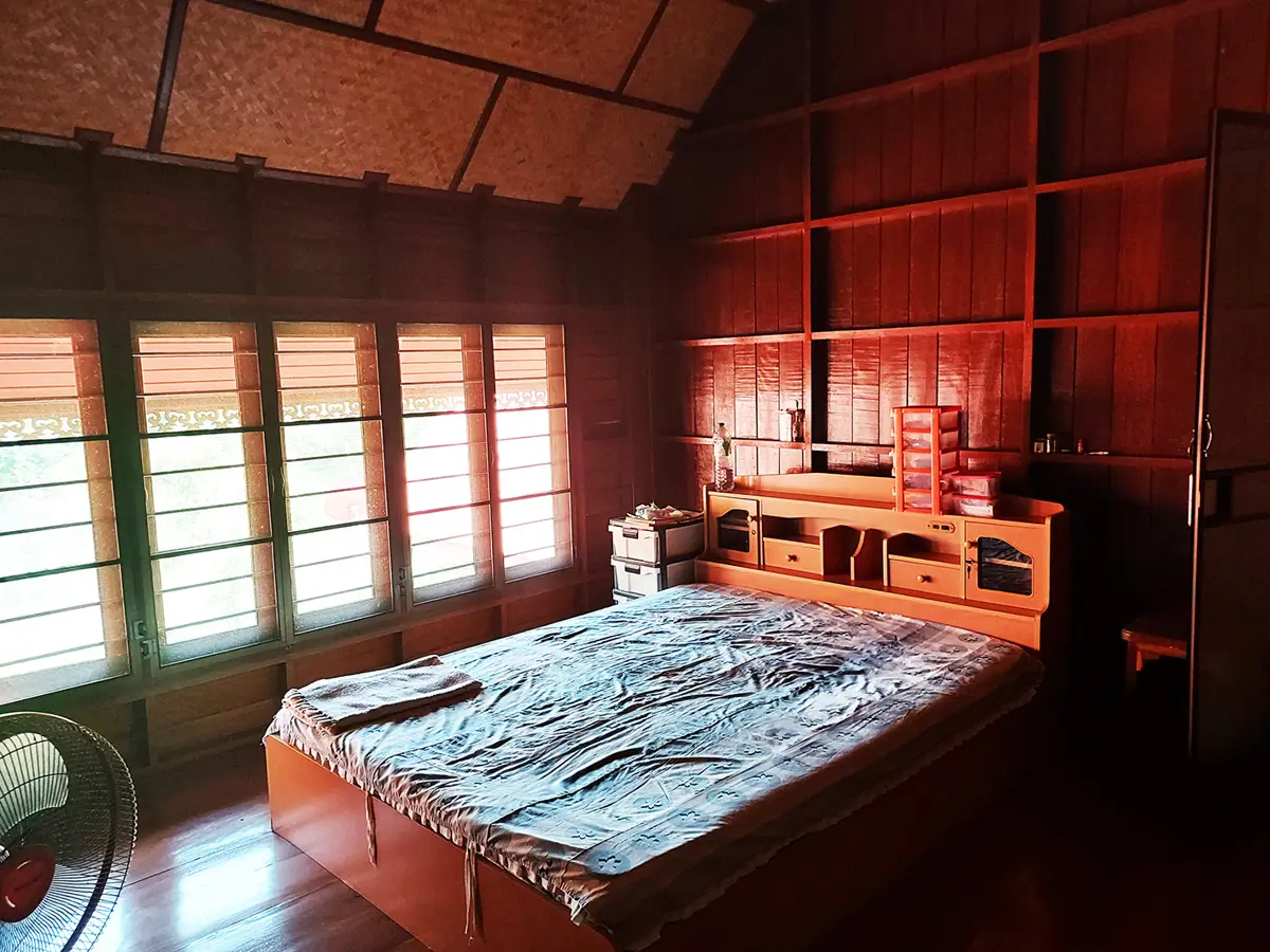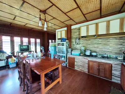 บนที่ดินมีอาคารหลายหลังสำหรับอยู่อาศัย เตรียมสถานที่ และเก็บของสำหรับ 3 ครอบครัว