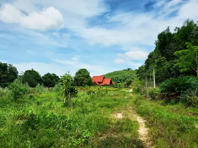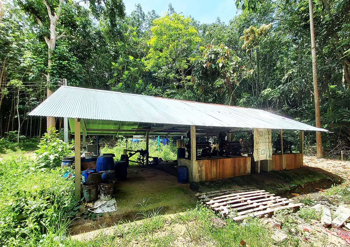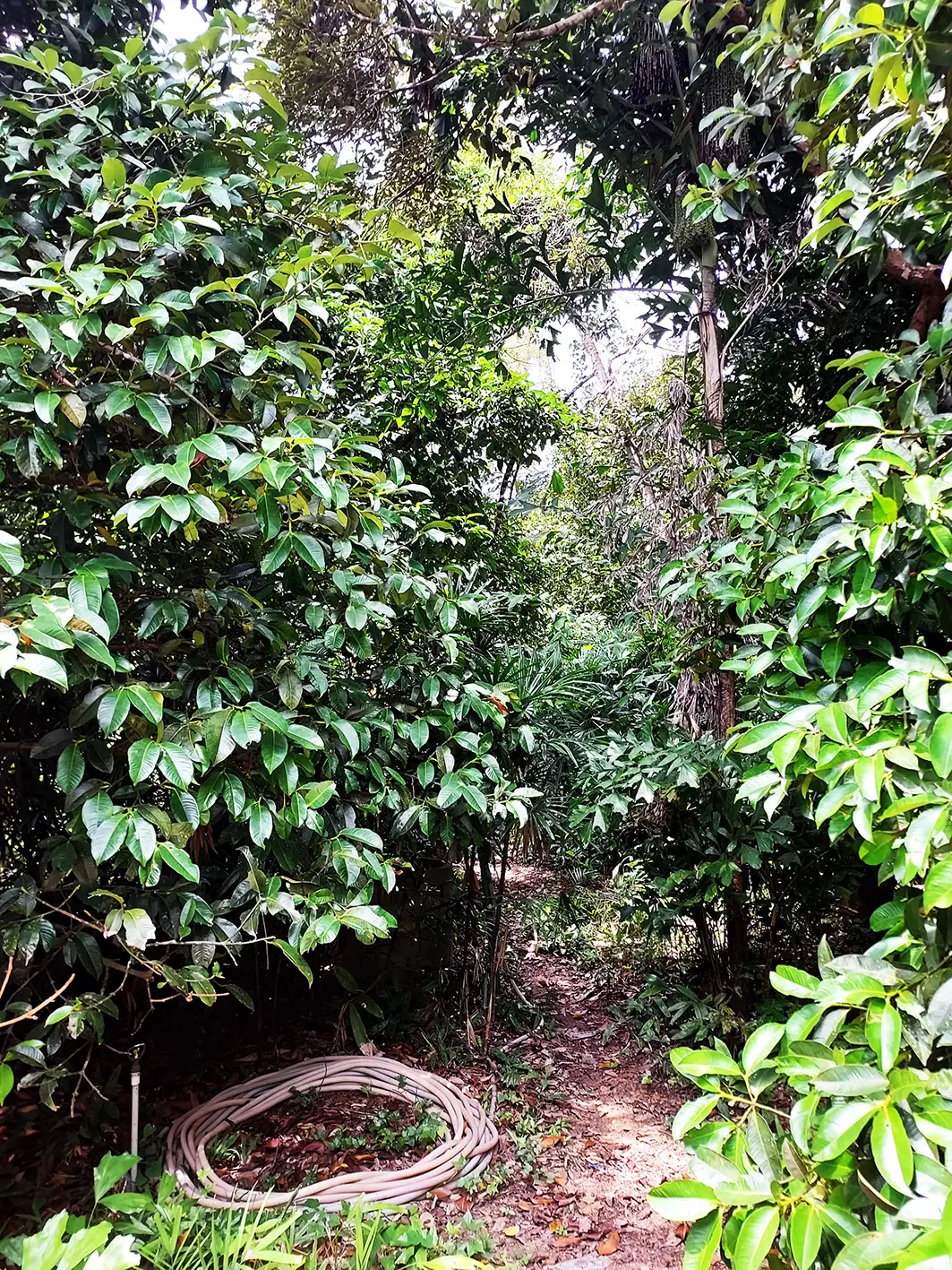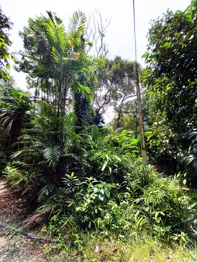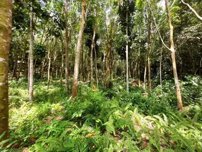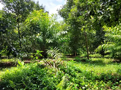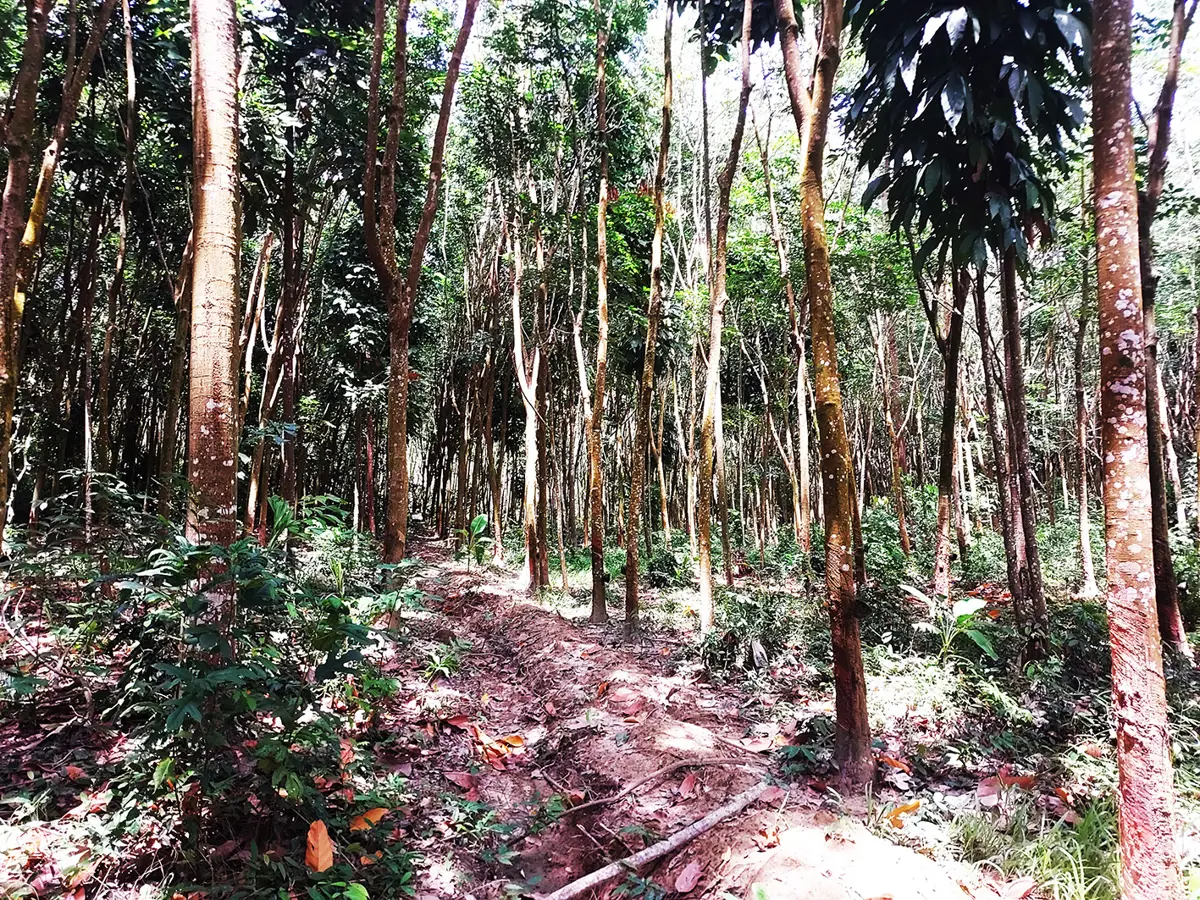 พื้นที่ทั้งหมดประมาณ 200 ไร่ (320,000 ตรม. 32 เฮกตาร์) มีบ้านหลังใหญ่พร้อมเรือนเพาะชำและต้นอินทผลัมประมาณ 4 ไร่ ปลูกทุเรียนประมาณ 26 ไร่ ปลูกทุเรียนและมังคุดรวมกัน และมีสระน้ำขนาดใหญ่มากสำหรับใช้น้ำตลอดทั้งปีประมาณ 10 ไร่ ปลูกเงาะประมาณ 4 ไร่ ปลูกยางพาราประมาณ 23 ไร่ บนที่ดินมีโฉนด นอกจากนี้ ยังมีสวนยางพาราประมาณ 124 ไร่ บนที่ดินไม่มีโฉนด แต่มีสิทธิจดทะเบียนในอนาคตด้วยการสนับสนุนการใช้ที่ดินเดิมและปัจจุบันตั้งแต่ปี 2532