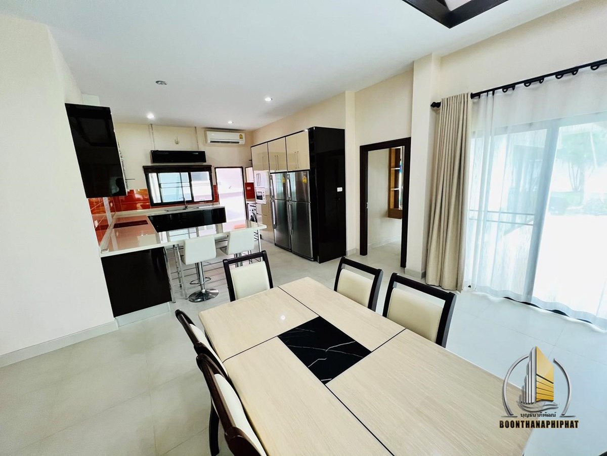 บ้านสำหรับขาย บ้านเดี่ยวชั้นเดียว  3 ห้องนอน  2 ห้องน้ำ เนื้อที่ 234 ตรว. (936 ตร.ม.) เป็นบ้านหลังใหญ่พร้อมสระว่ายน้ำส่วนตัวที่มีเนื้อที่เวณรอบบ้าน มีสวนกว้างมากพร้อมทั้งศาลาริมสระน้ำ ขายพร้อมเฟอร์นิเจอร์ มีครัวขนาดใหญ่สไตล์ยุโรป มีอุปกรณ์เครื่องครัวครบครัน ตู้เย็นขนาดใหญ่ มีครื่องซักผ้าและเครื่องใช้ไฟฟ้า มีที่จอดรถและประตูรีโมท