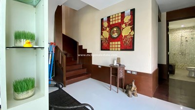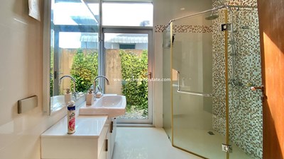 บ้านเดี่ยว 2 ชั้นเดียว 3 ห้องนอน 2 ห้องน้ำ พร้อมสะว่ายน้ำส่วนตัว ตั้งอยู่บนพื้นที่ 137.5 ตรว. (550 ตร.ม.) ขายพร้อมเฟอร์นิเจอร์และเคื่องใช้ไฟฟ้าครบครัน ชั้นล่างมี 2 ห้องนอน และห้องโถงที่กว้างพร้อมห้องครัวขนาดใหญ่ ชั้น 2 มีอีก 1 ห้องนอนพร้อมห้องแต่งตัว มีระเบียงขนาดใหญ่ บริเวณบ้านมีสระว่ายน้ำส่วนตัว สวน พื้นที่ BBQ และพื้นที่นังเล่น