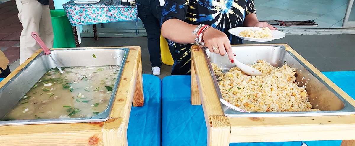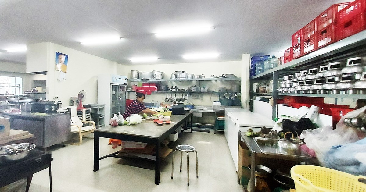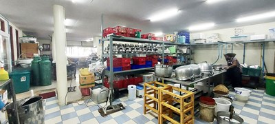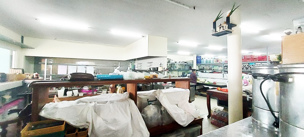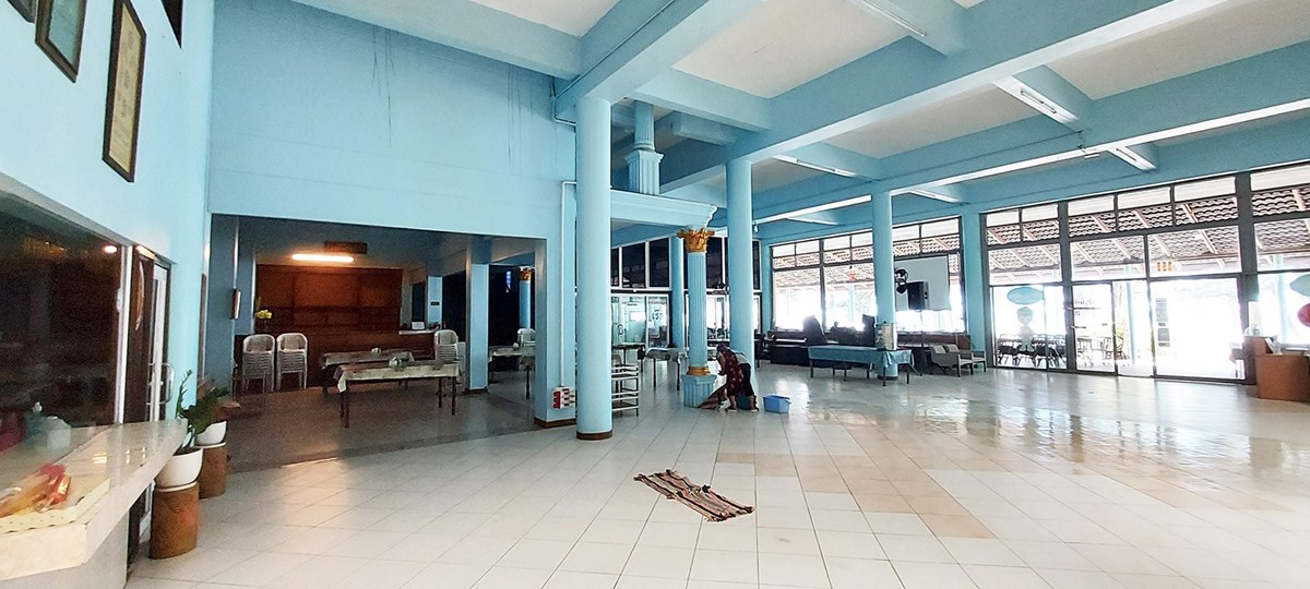 ที่ชั้นล่างมีพื้นที่ขนาดใหญ่สำหรับเสิร์ฟอาหาร ส่วนหนึ่งเป็นที่พักของพนักงานที่ทำงานในรีสอร์ทนี้และสำหรับแขกทั่วไปอีกด้วย ห้องครัวขนาดใหญ่มีความจุที่ดี ที่นี่ให้บริการอาหารเช้าเป็นหลัก แต่ยังรวมถึงอาหารกลางวันและอาหารเย็นในบางครั้ง(สำหรับวันหยุดยาว)
