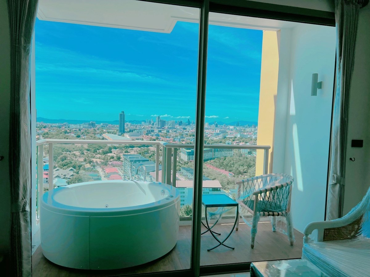 อพาร์ตเมนต์ 2 ห้องนอนสไตล์โมเดิร์นพร้อมระเบียงขนาดใหญ่ ตั้งอยู่บนชั้น 11 มีเฟอร์นิเจอร์ครบครันและมีระเบียงขนาดใหญ่ที่สามารถมองเห็นทิวทัศน์อันสวยงามของหาดจอมเทียนและทะเล