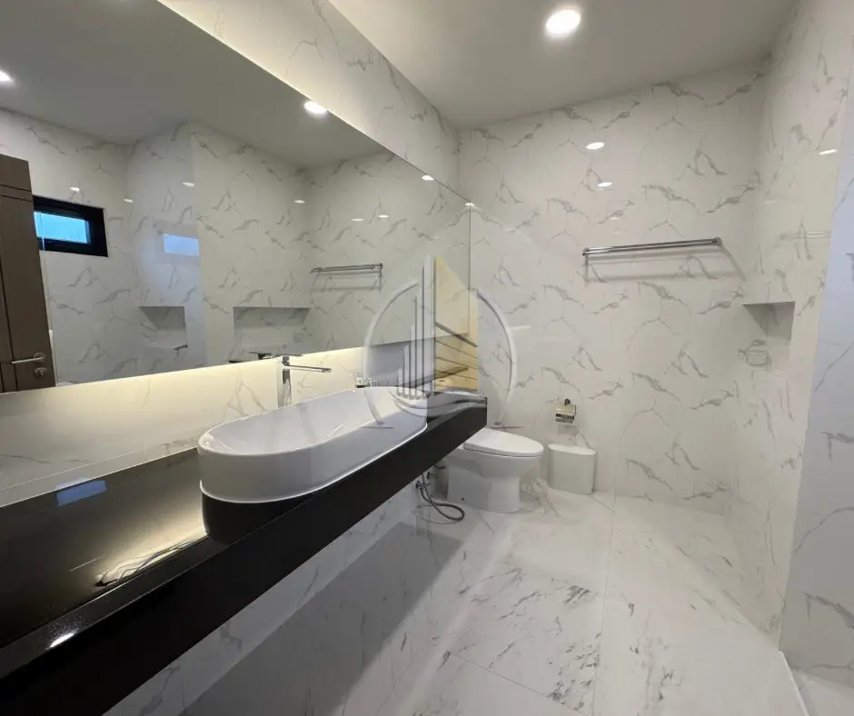 รูปแบบ 3 ห้องนอน 4 ห้องน้ำ พื้นที่ 108 ตร.วา (432 ตร.ม.) บ้านหลังใหญ่พื้นที่บริเวณบ้านและสวน ให้เช่าพร้อมเฟอร์นิเจอร์ และเครื่องใช้ไฟฟ้า มีที่จอดรถในร่ม สระว่ายน้ำส่วนตัวและประตูรีโมท