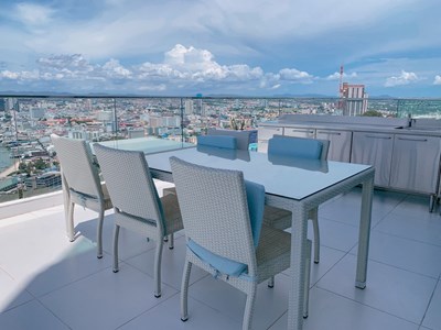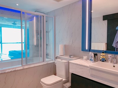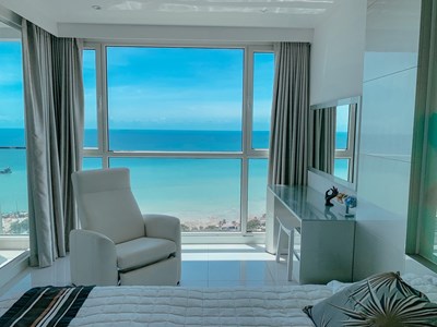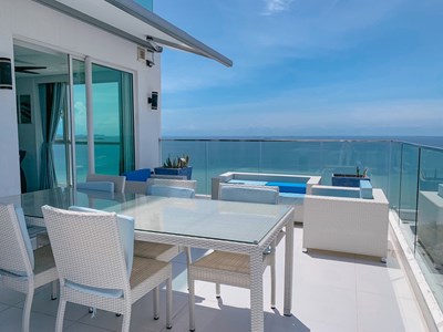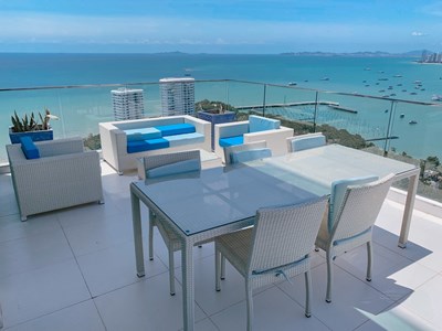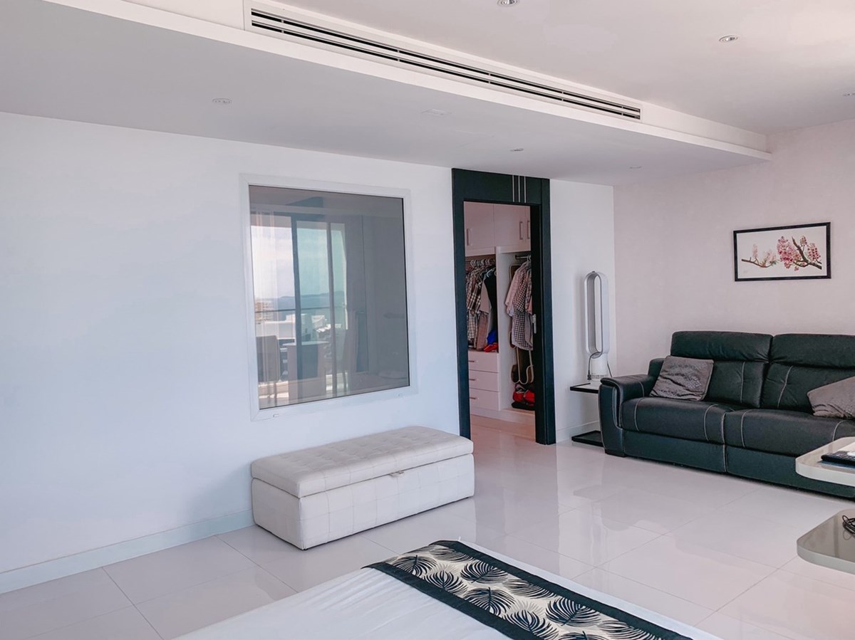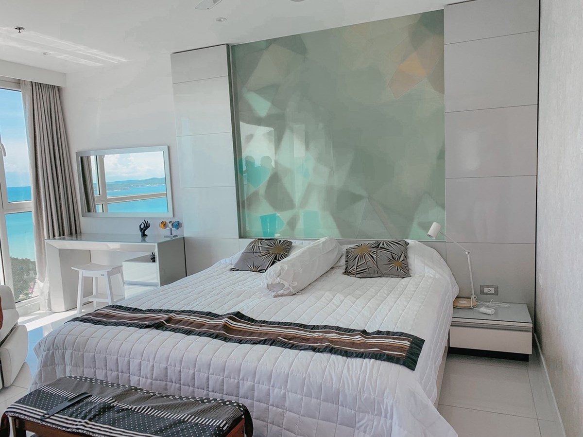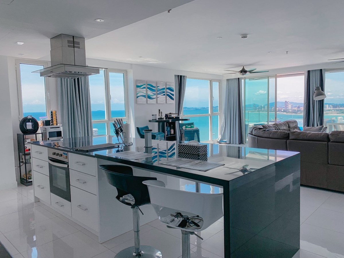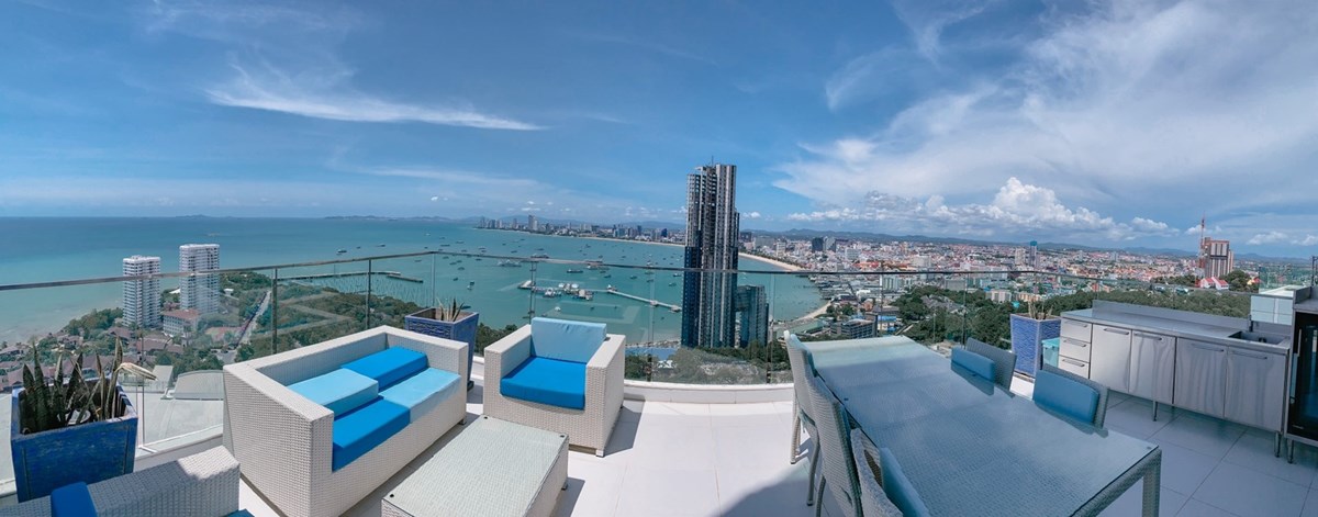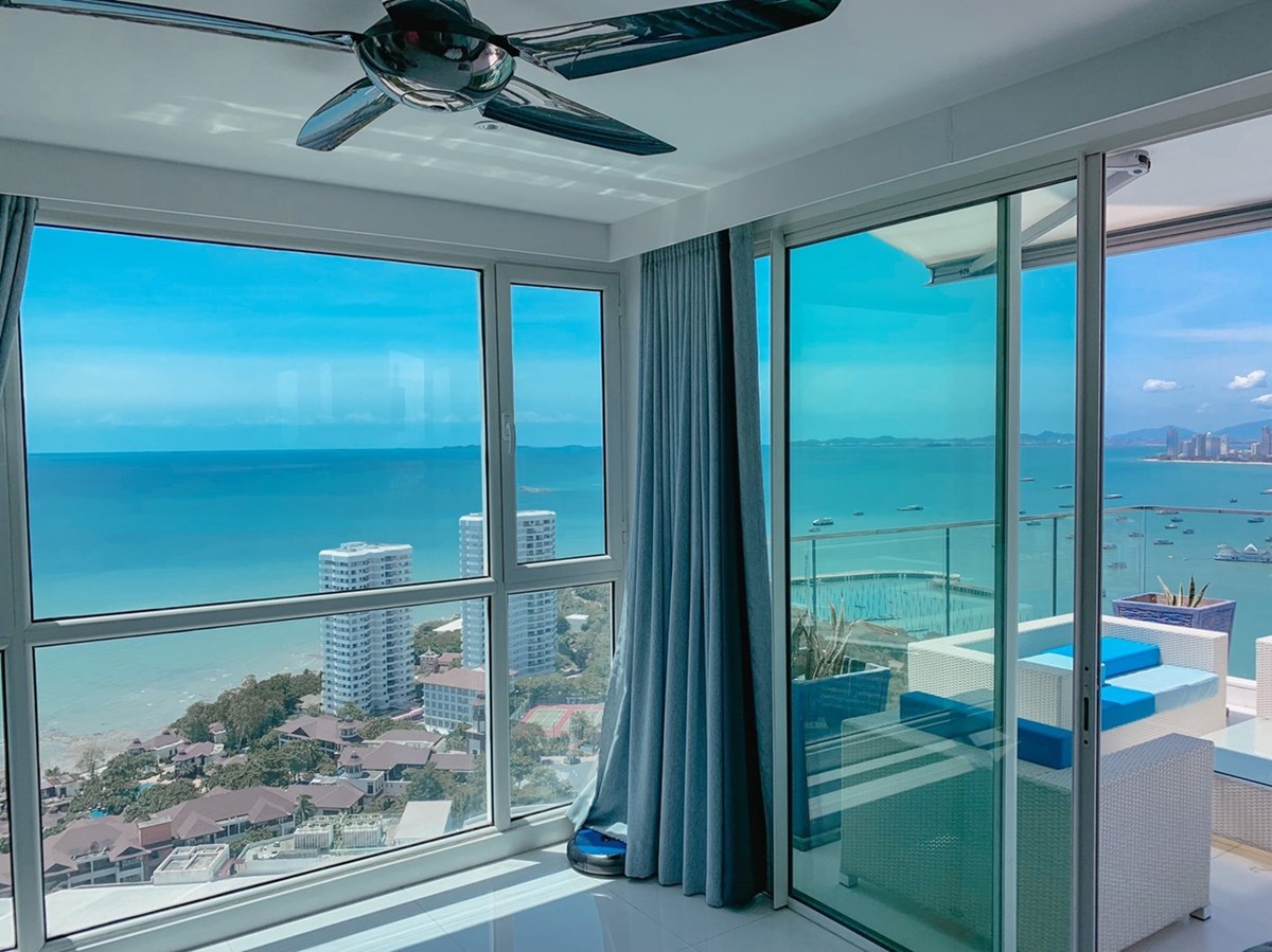 ห้องหัวมุมที่งดงามพร้อมระเบียงดาดฟ้าและระเบียง 2 แห่ง มี 3 ห้องนอน 3 ห้องน้ำ ห้องนอนและห้องน้ำทุกห้องมีวิวตระการตาเหนืออ่าวพัทยา จอมเทียน เกาะล้าน...