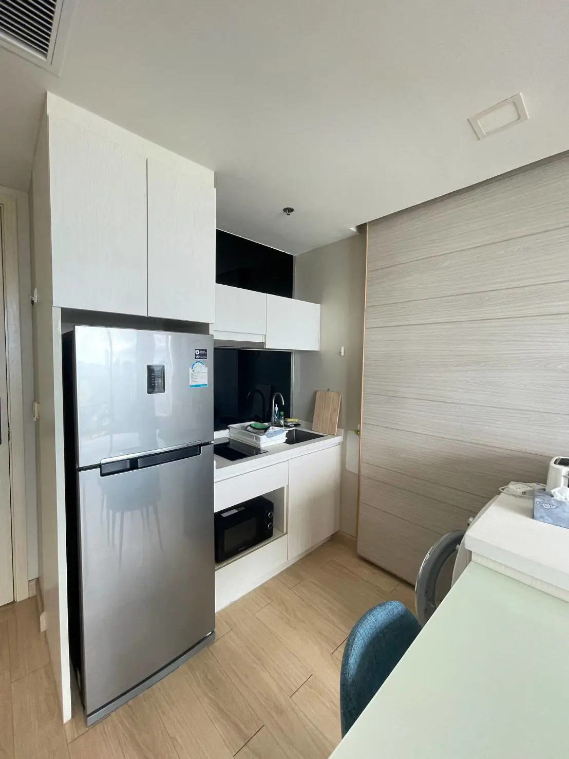 เฟอร์นิเจอร์ : ครัวยุโรป ตู้เย็นใหญ่ เตาไฟฟ้า เตาอบ ไมโครเวฟ เครื่องซักผ้า มีเฟอร์นิเจอร์ครบชุดและของใช้ครบครัน