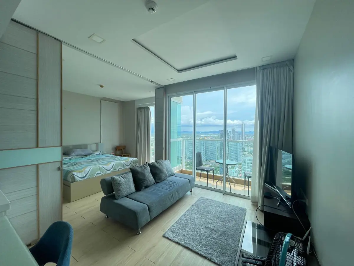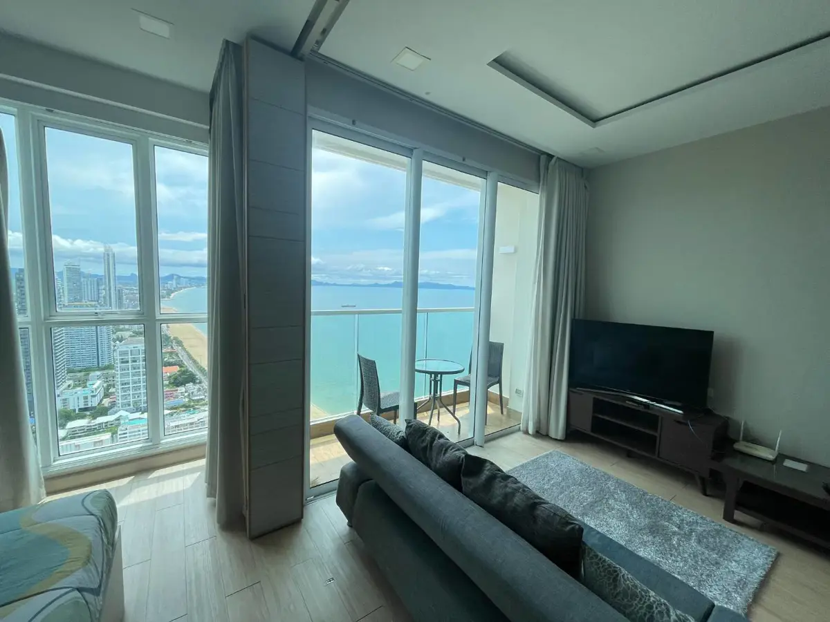 สำหรับเช่าคอนโดหรูริมทะเลจอมเทียน พัทยา ห้องใหญ่หัวมุมตั้งอยู่บนชั้น 40 สามารถมองวิวทะเล และวิวพระอาทิตย์ตกดิน