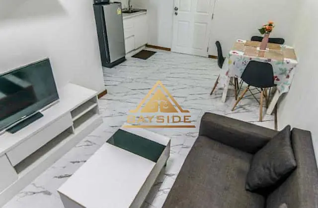 ห้องแบบ 1 ห้องนอน 1 ห้องน้ำ ชั้น 4 พื้นที่ใช้สอย 30 ตรม. เฟอร์นิเจอร์ครบ โต๊ะทานอาหาร