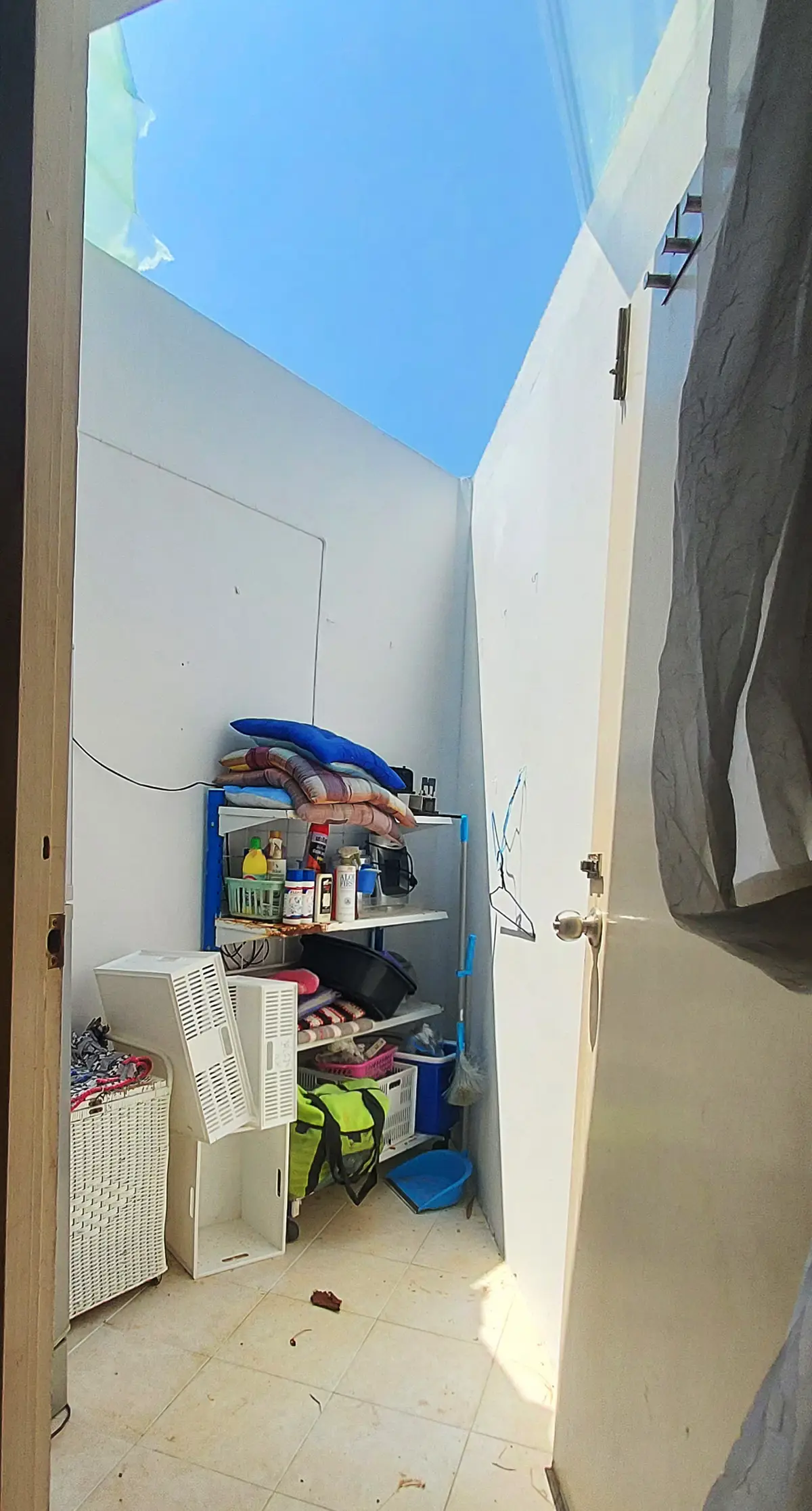 ทาวน์เฮาส์ตั้งอยู่บนที่ดินรูปสามเหลี่ยม หันหน้าออกถนนในหมู่บ้านสินสยาม แม่พิมพ์ จังหวัดระยอง พื้นที่ใช้สอยประกอบด้วยห้องนั่งเล่นและห้องครัวพร้อมห้องน้ำ ห้องนอนและพื้นที่ทำงาน ติดกับห้องนอนเป็นห้องเก็บของ