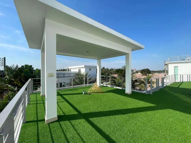 ชั้นดาดฟ้ามีพื้นที่ใช้สอยมาก ผู้เช่าสามารถติดตั้งอ่างจากุซซี่ได้ จัดโต๊ะทำกิจกรรมเพื่อสังคมได้ตามใจชอบ