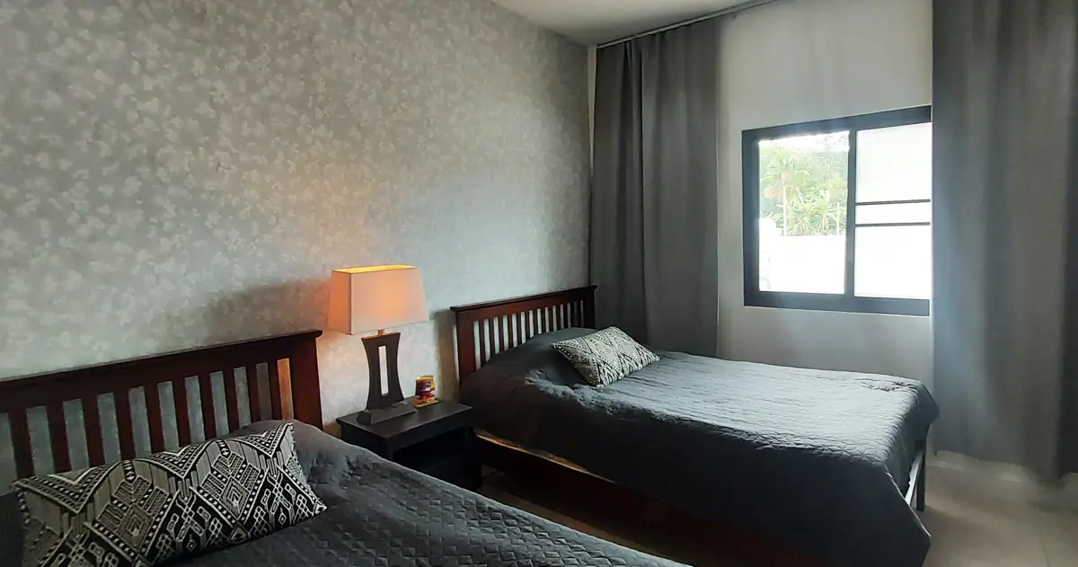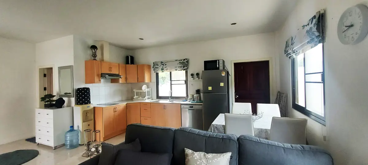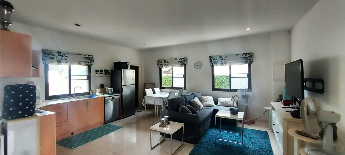 วิลล่าประกอบด้วย 2 ห้องนอน 2 ห้องน้ำ ห้องครัวและห้องนั่งเล่นขนาดใหญ่ ห้องครัวกลางแจ้ง และระเบียงขนาดใหญ่ที่มีหลังคา