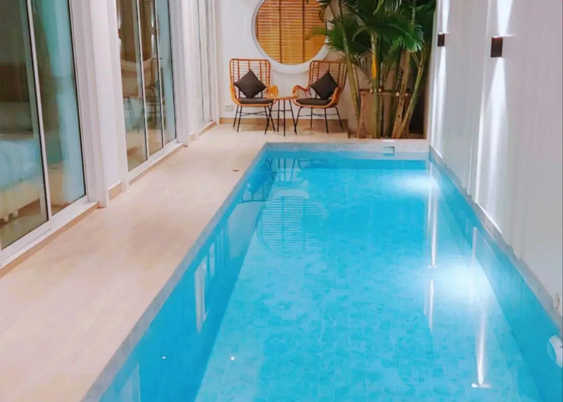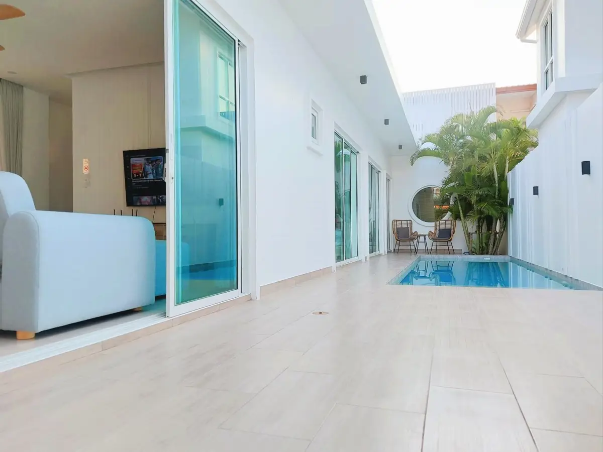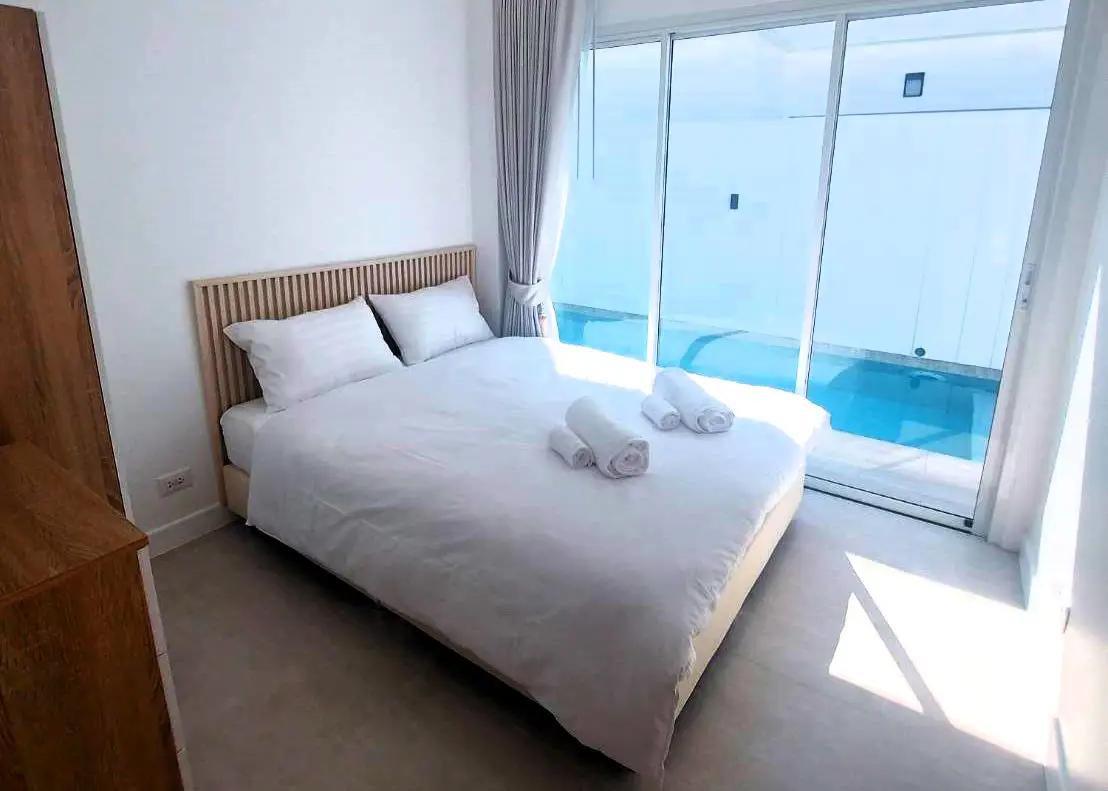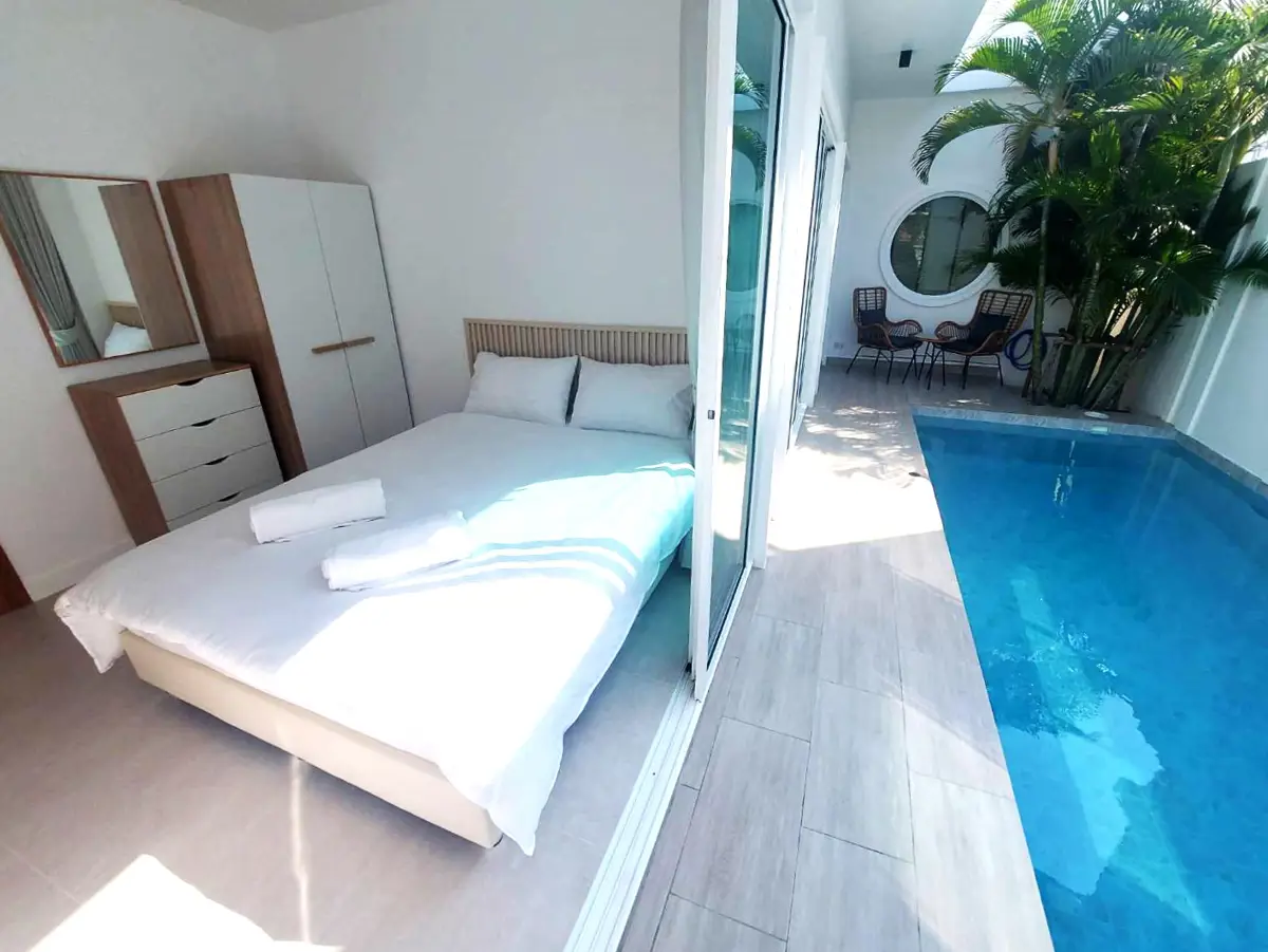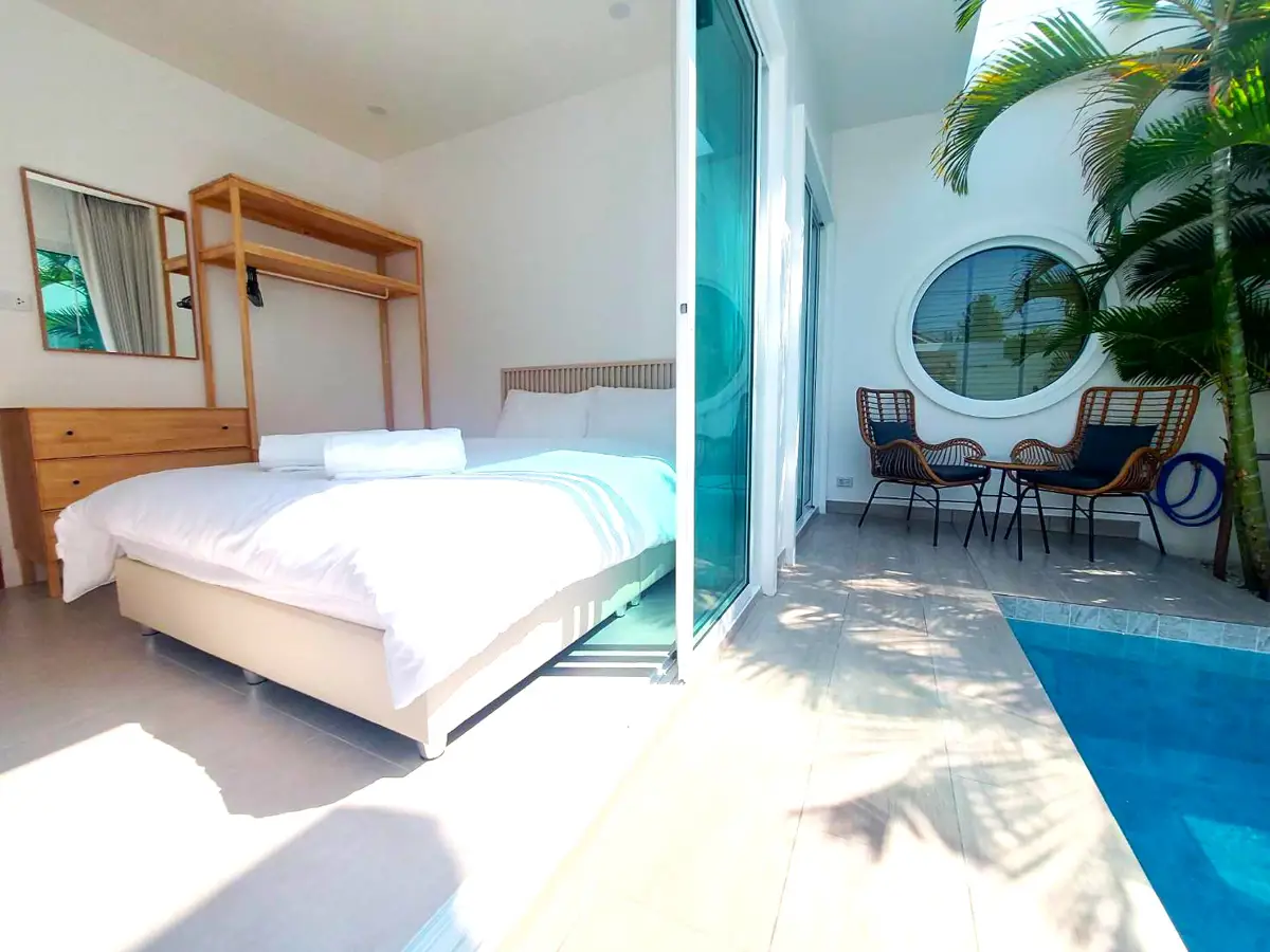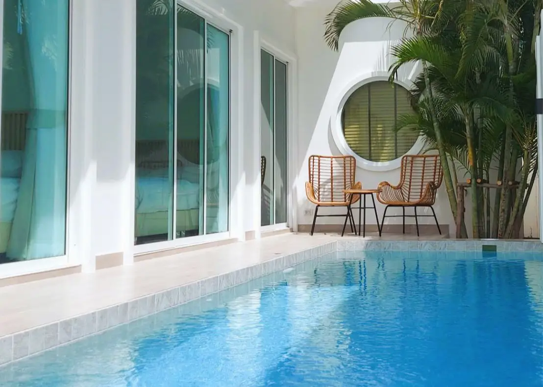 สัมผัสความหรูหราและความสงบในวิลล่าพูลโมเดิร์นสุดงดงามที่ออกแบบด้วยเส้นสายที่เรียบหรูและการตกแต่งที่หรูหรา วิลล่ามีห้องนอนที่สว่างและโปร่งสบาย ทุกห้องมีประตูกระจกจากพื้นจรดเพดานที่เปิดออกไปสู่สระว่ายน้ำส่วนตัวที่สะอาดและเงียบสงบ—เหมาะสำหรับการแช่น้ำตลอดทั้งวัน