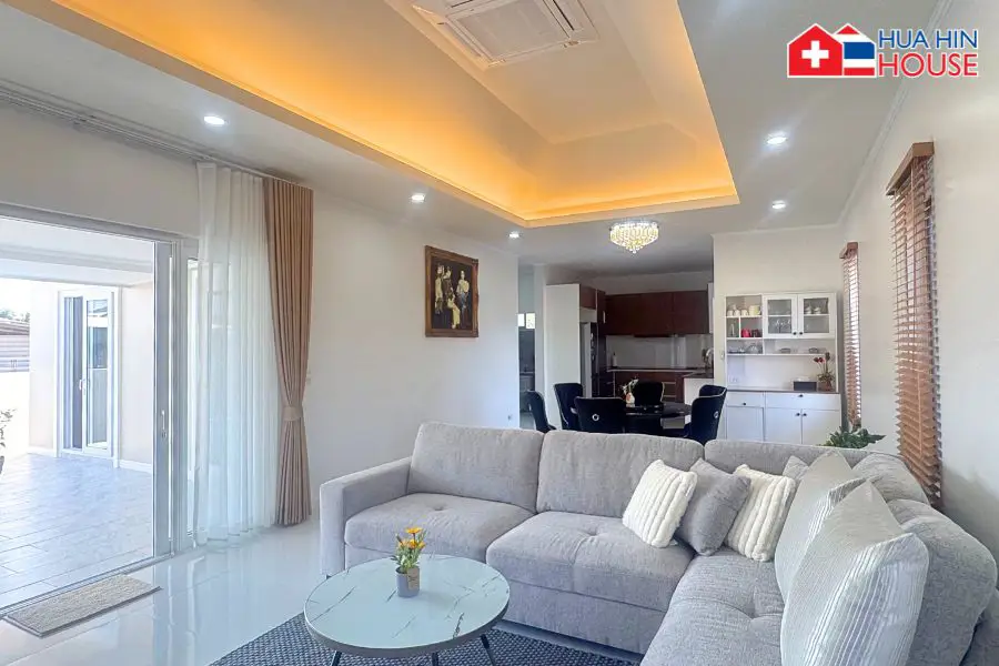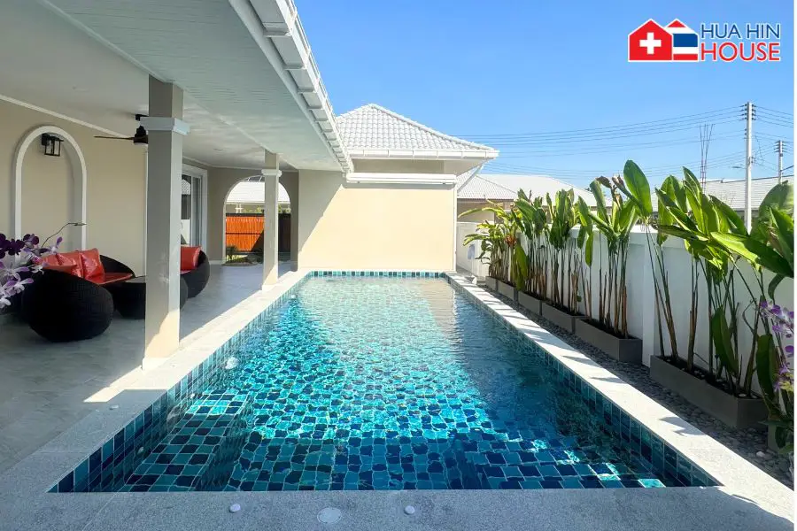 พูลวิลล่าหรูชั้นเดียวสร้างใหม่หลังนี้ มอบสภาพแวดล้อมการอยู่อาศัยที่สะดวกสบายและใช้งานได้จริง ออกแบบตามมาตรฐานการอยู่อาศัยแบบยุโรป ตั้งอยู่ในบรรยากาศเงียบสงบและร่มรื่นของพื้นที่ทับใต้ อำเภอหัวหิน ผสมผสานความเป็นส่วนตัว ฟังก์ชันการใช้งาน และดีไซน์ที่หรูหราได้อย่างลงตัว เหมาะสำหรับการเช่าระยะยาว ผู้เกษียณอายุ หรือครอบครัว