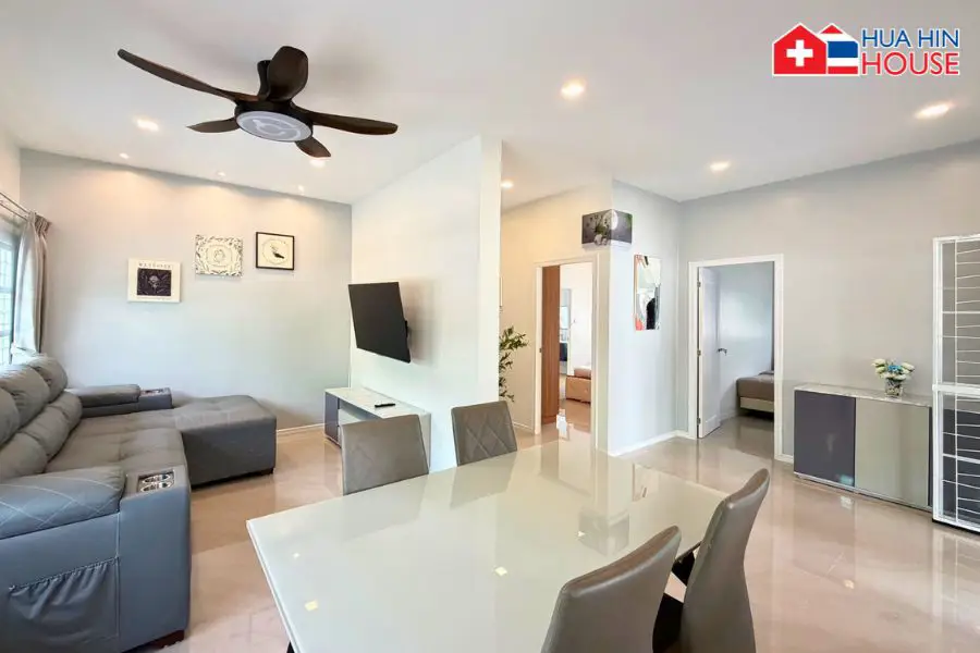 บ้านรีโนเวทใหม่ สไตล์โมเดิร์น Cozy พร้อมอยู่ ตั้งอยู่ในโซนที่อยู่อาศัยยอดนิยมของหัวหิน ซอย 102 เดินทางสะดวก ใกล้ร้านค้า ร้านอาหาร โรงเรียน และสถานที่ท่องเที่ยว ใช้เวลาเพียง 5 นาที (2.7 กม.) ถึงบลูพอร์ต ใกล้สวนน้ำวานา นาวา และเพียง 20 นาทีถึงสนามบินหัวหิน เหมาะทั้งอยู่อาศัยและการลงทุน
