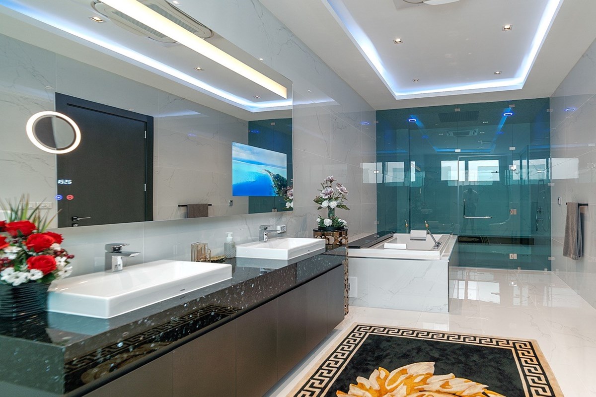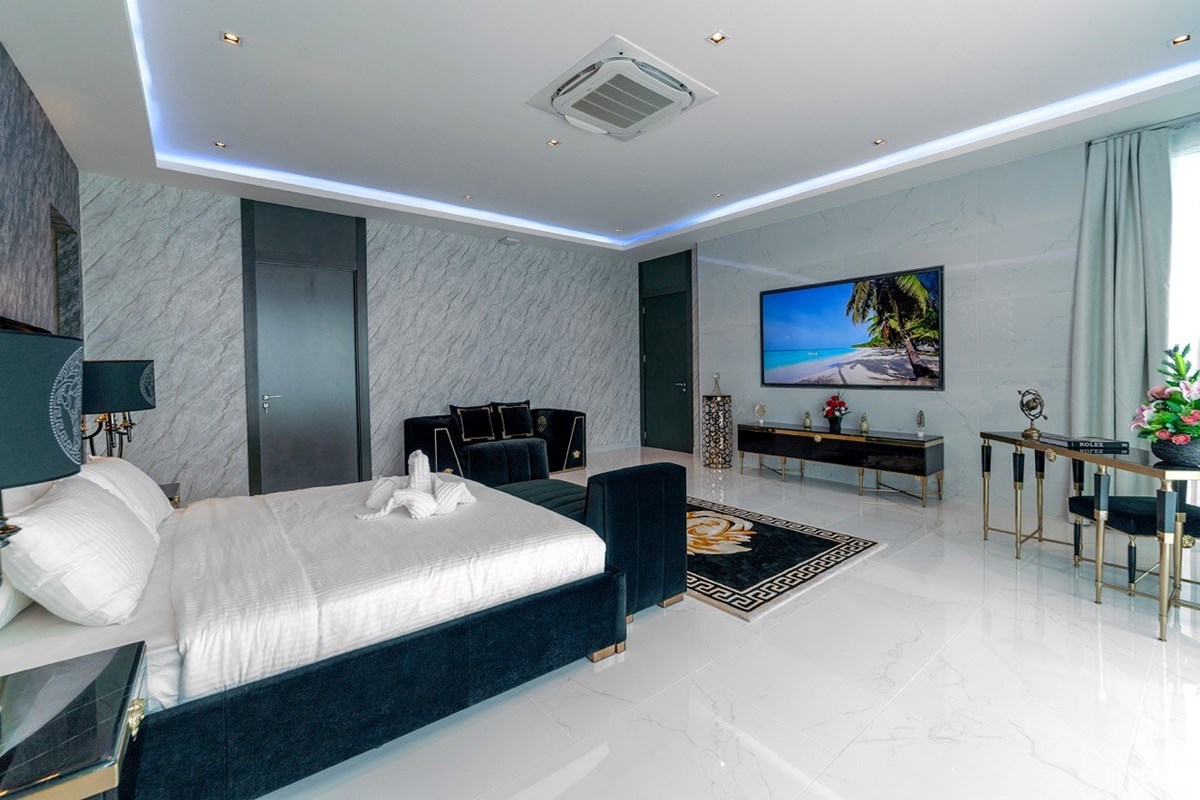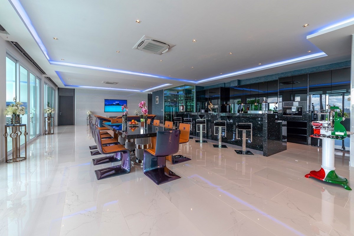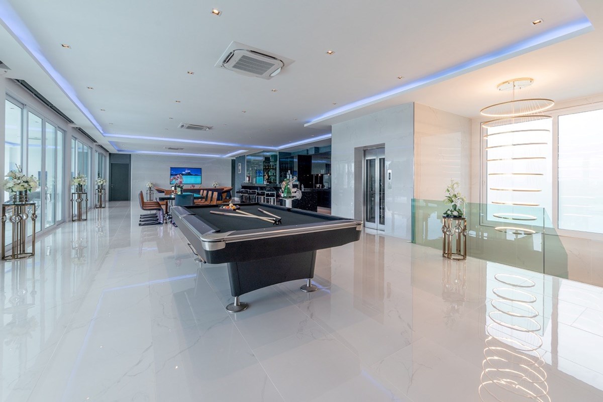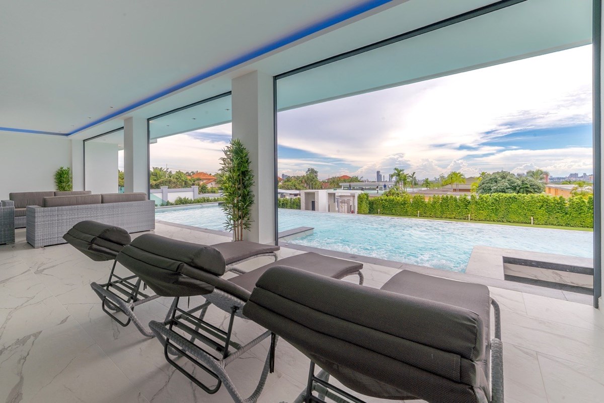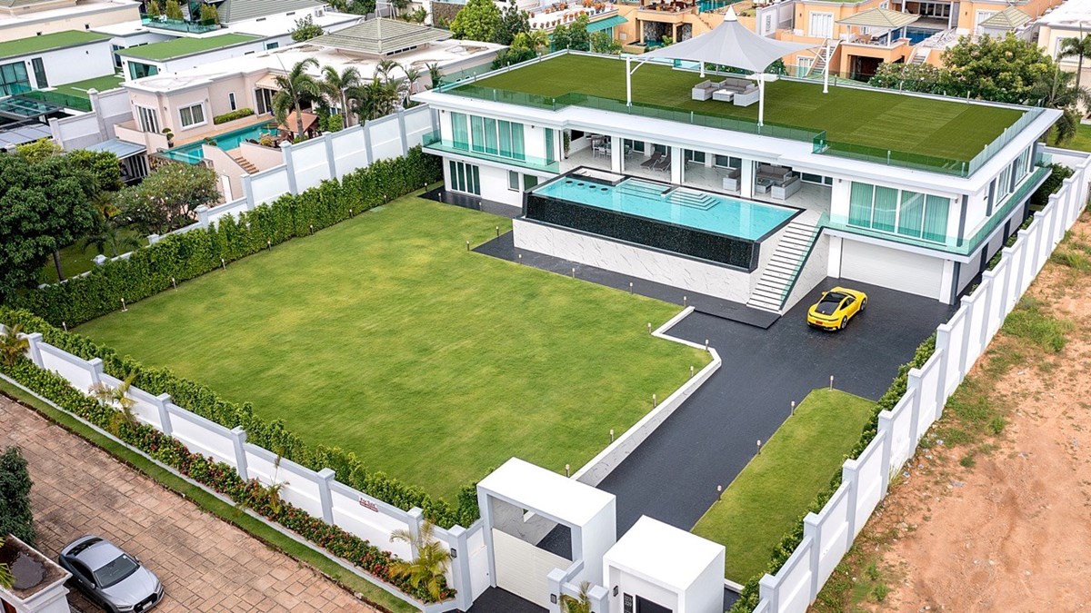 10 ห้องนอน 12 ห้องน้ำ พูลวิลล่าพร้อมวิวสุดวิเศษในพื้น 2400 ตรม พื้นที่ใช้สอย1700 ตรม ขนาดที่ดิน 2100 ตรม (1ไร่ 125 งาน) ที่พักทันสมัยแห่งนี้ตั้งอยู่ในสยามรอยัลวิว เอสเตท มีสปา - 90 ตร.ม. ฟิตเนส ซาวน่า ห้องอบไอน้ำ ห้องทำงาน ห้องครัว 3 ห้อง ห้องเก็บไวน์ อ่างจากุซซี่ 3 อ่างออกแบบเฟอร์นิเจอร์และอพาร์ตเมนต์สำหรับแขก โรงรถสำหรับรถยนต์ 4 คัน สระว่ายน้ำขนาด 16 x 6 เมตร ลิฟต์ส่วนตัว สำรองเครื่องกำเนิดไฟฟ้า ห้องซักรีด ห้องสาธารณูปโภค ห้องเก็บของ 2 ห้อง มีระบบสปริงเกอร์กระจกสองชั้นแบบ สั่งทำพิเศษจากพื้นจรดเพดานสมาร์ททีวี 12 เครื่อง ห้องน้ำแบบญี่ปุ่น และอื่นๆ อีกมากมาย พร้อมการตกแต่งระดับพรีเมียมใหม่ล่าสุด และงดงามที่สุดในพัทยา !!